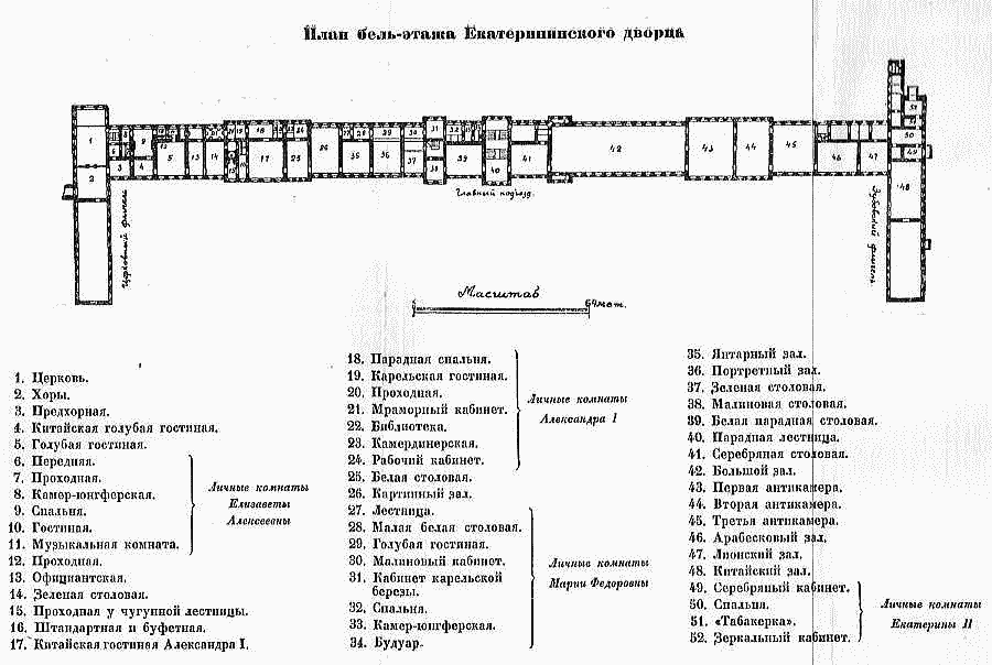 | ロシア短訪・総目次に戻る ・エカテリーナ宮殿 エカテリーナ宮殿・行き方 エカテリーナ公園1 エカテリーナ公園2 エカテリーナ宮殿・門と外飾 エカテリーナ宮殿・計画・外観 エカテリーナ宮殿・入り方 エカテリーナ宮殿・内部概要 エカテリーナ宮殿・内部概要2 ◆サンクトペテルブルグ市 ![]() ここでエカテリーナ宮殿の外観をご覧いただきましょう! ◆エカテリーナ宮殿の外観 エカテリーナ宮殿の建設は1752年5月から4年の歳月をついやし、1756年7月30日に全長325メートルの現行規模の宮殿が完成しています。 宮殿の名前は、ピョートル大帝の后でもあったロシア皇帝エカテリーナ1世に由来しています。エカテリーナがドイツの建築家を雇って夏の避暑用の離宮として1717年に作らせたのが最初のもので、その後、4代ロシア皇帝アンナがロシア人建築家に命じ増築させました。 6代のロシア皇帝となったエリザヴェータは母のエカテリーナが建築させたものが時代遅れで不便であるとして抜本的に作り直すことを決定、壮麗・壮大なロココ調建築に入れ替えるよう、既に冬宮殿建設に関わっていた宮廷付き建築家バルトロメオ・ラストレッリに命じました。 建設は1752年5月から4年の歳月をついやし、1756年7月30日に全長325メートルの現行規模の宮殿が完成しています。 下の写真は、いずれもエカテリーナ宮殿の計画図です。写真は、いずれもエカテリーナ宮殿の計画図(平面図)です。 ![]() Source:https://www.pinterest.com/johntflowers/catherine-palace/ 以下は、エカテリーナ宮殿の直線施設部分の詳細です。 |