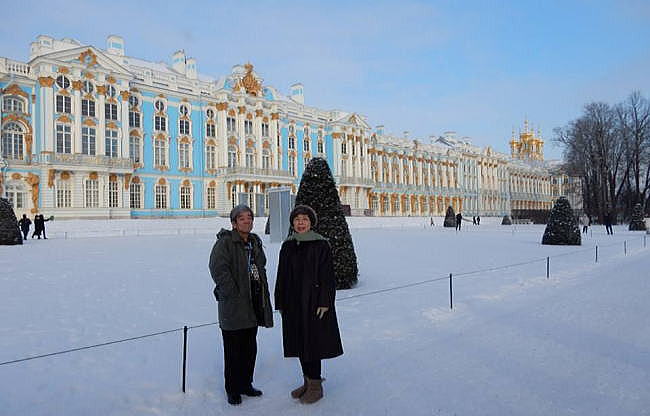 エカテリーナ宮殿を背景にした青山貞一、池田こみち
