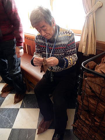 | ロシア短訪・総目次に戻る ・エカテリーナ宮殿 エカテリーナ宮殿・行き方 エカテリーナ公園1 エカテリーナ公園2 エカテリーナ宮殿・門と外飾 エカテリーナ宮殿・計画・外観 エカテリーナ宮殿・入り方 エカテリーナ宮殿・内部概要 エカテリーナ宮殿・内部概要2 ◆サンクトペテルブルグ市 ![]() ◆宮殿に入る 宮殿のほぼ中央に入口があります。入口を入ると,下の写真のようなチケットカウンターがあります。しかし、現在、エルミタージュ美術館、エカテリーナ宮殿とも、事前にEチケットをインターネットで購入するのが一般的となっています。 それは、入場時の混雑を避けるためですが、同時に当日券よりも安く購入することができるからです。 なお、開館時間、入場料などは巻末に詳細を付けました! ![]() エカテリーナ宮殿のチケットカウンター 撮影:青山貞一 Nikon Coolpis S9900 2017-2 ![]() エカテリーナ宮殿のチケットカウンター 撮影:青山貞一 Nikon Coolpis S9900 2017-2 その後はエルミタージュ美術館同様、X線を使ったセキュリティチェックを受けます。空港などで行われているX線を使ったかなり本格的なチェックです。 さらに、エルミタージュ美術館同様コートと(場合により)バッグなどをクロークに預けます。コートとリュックは必ず預けることになっています。また最近では、タンクトップやホットパンツなどの女性は入場を制限される場合があります。これはいわばマナーとして当選のことです。 さら床が汚れないように、靴の上からビニール製の靴カバーを履きます。下の写真はその靴カバー入れです。おびただしい数があります。 ![]() 撮影:青山貞一 Nikon Coolpis S9900 2017-2 エカテリーナ宮殿の入り口で靴カバーをかける青山です。 ![]() 撮影:池田こみち Nikon Coolpis S9900 2017-2 なお、エカテリーナ宮殿の入館情報は以下の通りですが、事前に確認しておいた方がよいでしょう。