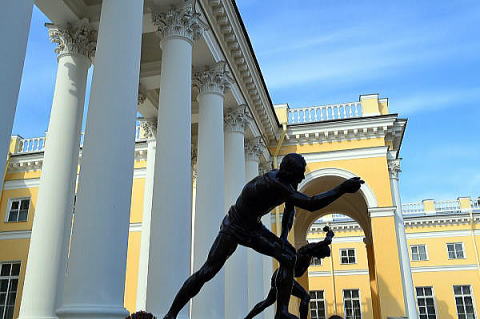| ロシア短訪・総目次に戻る ・アレクサンダー宮殿 概要・歴史 外観・景観 居室・内装 調度 ◆サンクトペテルブルグ市 ![]() サンクトペテルブルグ市の紋章 以下は往事のアレクサンダー宮殿と庭園の景観です。 ![]() 往事のアレクサンダー宮殿と庭園の景観 Source:Wikimedia Commons By Branson DeCou - Courtesy Special Collections, UC Santa Cruz, Public Domain, Link ロシア革命後 ロシア革命が起こると、アレクサンドロフスキー宮殿は臨時政府に接収されました。アレクサンドル・ケレンスキーによって、1917年8月1日、皇帝一家はシベリア鉄道によってトボリスクに移送され、幾多の変遷を経て、ボリシェヴィキによってエカテリンブルクで殺害されました。 以後、宮殿はソビエト政権によって博物館となります。 第二次世界大戦直前、最も貴重な家具、インテリア類は避難しています。残りのコレクションの避難が終了しないうちに、独ソ戦が開始され、宮殿はナチス・ドイツの占領下に陥ります。 ![]() 彫像付き)アレクサンダー宮殿(サンクトペテルブルクとレニングラード地域、プーシキン、宮殿通り2、公園の景観の一部) Source:Wikimedia Commons ![]() 彫像付き)アレクサンダー宮殿(サンクトペテルブルクとレニングラード地域、プーシキン、宮殿通り2、公園の景観の一部) Source:Wikimedia Commons ![]() 彫像付き)アレクサンダー宮殿(サンクトペテルブルクとレニングラード地域、プーシキン、宮殿通り2、公園の景観の一部) Source:Wikimedia Commons 戦争中、宮殿は親衛隊本部として使用されて、ドイツ軍の作戦指揮が発せられした。戦争によって、宮殿が誇る貴重なコレクションは半壊を余儀なくされました。レニングラード攻防戦後、宮殿はソ連軍に奪還されました。宮殿は博物館へ復元を目ざしましたが、一時期、ソ連海軍の管轄下で孤児院となり、ニコライ2世の皇子女の居室がそれに使用されました。 現在の宮殿 ソ連崩壊後、エカテリーナ宮殿や同じくサンクトペテルブルク郊外のガッチナやパヴロフスクの宮殿とともに博物館として整備されています。1997年には宮殿左翼棟で常設展が開催されるようになっています。現在ではニコライ2世に関する新しい研究やアレクサンドラ皇后のコーナーが設置されています。 以下は現在のアレクサンダー宮殿の周辺の往時の面影を残す光景です。閑静な別荘地となっています。 ![]() 彫像付き)アレクサンダー宮殿(サンクトペテルブルクとレニングラード地域、プーシキン、宮殿通り2、 公園の景観の一部) Source:Wikimedia Commons ![]() アレクサンドロフスキー宮殿 Source: Wikimedia Commons Alex 'Florstein' Fedorov, CC 表示-継承 4.0, リンクによる 以下は、ツァールスコエ・セローのアレクサンダー宮殿の外観です。 つづく |