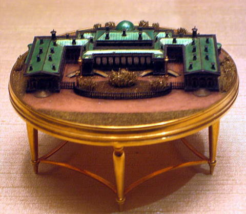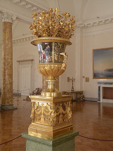 | ロシア短訪・総目次に戻る ・アレクサンダー宮殿 概要・歴史 外観・景観 居室・内装 調度 ◆サンクトペテルブルグ市 ![]() サンクトペテルブルグ市の紋章 ◆アレクサンダー宮殿の調度 以下アレクサンダー宮殿の調度を紹介します。 ![]() アレキサンダー宮殿の半円形のホール (彫像付き)アレクサンダー宮殿(サンクトペテルブルグとレニングラード地域、プーシキン、 宮殿通り2、シンケルの花瓶) Source:Wikimedia Commons By Vitold Muratov - Own work, CC BY-SA 3.0, Link 以下はアレクサンサー宮殿をモチーフにした15ルーブルの記念切手です。 ![]() アレクサンサー宮殿をモチーフにした15ルーブルの記念切手 Source:Wikimedia Commons 以下はアレクサンダー宮殿にある絵画とイコンです。 ![]() (彫像付き)アレクサンダー宮殿(サンクトペテルブルクとレニングラード地域、プーシキン、 宮殿通り2,肖像画) Source:Wikimedia Commons Vitold Muratov - 投稿者自身による作品, CC 表示-継承 3.0, リンクによる ![]() (彫像付き)アレクサンダー宮殿(サンクトペテルブルクとレニングラード地域、プーシキン、宮殿通り2、インテリア) Source:Wikimedia Commons Vitold Muratov - 投稿者自身による作品, CC 表示-継承 3.0, リンクによる 下は、ピーター・カール・ファベルジェによる宮殿の小さな模型です。 ![]() ピーター・カール・ファベルジェによる宮殿の小さな模型 Source:Wikimedia Commons Автор: shakko - собственная работа, CC BY-SA 3.0, Ссылка 下は、卵の中の女王とアレクサンダー宮殿の模型です。 ![]() アレクサンドル3世の馬術の絵(ファベルジェの卵) インペリアル・イースター・エッグ「アレクサンダー宮殿」 Source:Wikimedia Commons By shakko - Own work, CC BY-SA 3.0, Link ![]() アレキサンダー3世の騎乗姿(Faberge egg) "アレクサンダー3世の乗馬記念碑"の卵と "皇室所有のスタンダードヨット"の卵。 Source:Wikimedia Commons By shakko - Own work, CC BY-SA 3.0, Link 以下は、記念切手になった卵の中のアレキサンダー三世のミニチュア騎乗像の卵像です。 ![]() モスクワのクレムリン博物館に収蔵されているファヴェルジュの宝石。 Source:Wikimedia Commons 註)ファベルジュ:ロシアの金細工職人で、宝石を飾りと琺瑯を塗られたイースターエッグをヨーロッパ王族のために作ったことで知られる(1846年?1920年)皇帝アレクサンドル3世を記念したイースターエッグ。1910年作、金、プラチナ、ダイヤモンド、クリスタル、ラピスラズリなどを用い、鋳造、エンボス加工、彫刻などが施されている。卵は1910年の復活祭の日に、皇帝ニコライ2世からその母である皇后マリア・ヒョウードロヴナに贈られた物。750ルーブルのロシア切手は、1995年8月15日に発行された。 ![]() アレクサンサー宮殿をモチーフにした15ルーブルの記念切手 Source:Wikimedia Commons 以下はメープルルームコーナーキャビネットと半円形のソファーです。 ![]() アレクサンダー宮殿、楓の間(メープル。ルーム)のコーナーキャビネットとカウチ(昼寝用ソファ) Source:Wikimedia Commons Di Alexander Lukomsky - http://www.dobroeslovo.ru/viewtopic.php?t=2791 (direct link)http://imageshack.us/photo/my-images/515/cabinetcouch1932x14499bw.jpg/ (direct link)http://forum.alexanderpalace.org/index.php?action=printpage;topic=3561.0, Pubblico dominio, Collegamento 以下はメープルルームコーナーの調度と飾り物です。 ![]() アレクサンダー宮殿、楓の間(メープル。ルーム)のコーナーキャビネットとカウチ(昼寝用ソファ) Source:Wikimedia Commons By C.E. de Hahn & Co. Tzarskoe Selo - http://oldsp.ru/old/photo/view/20095, Public Domain, Link つづく ペテルゴフへ 総目次に戻る |