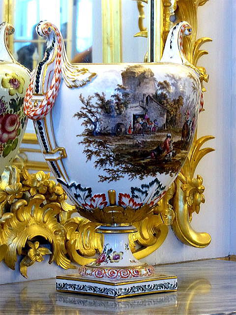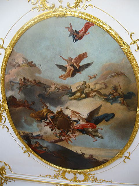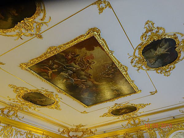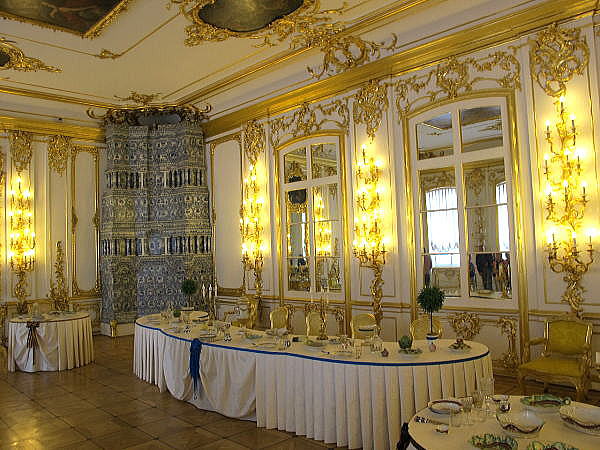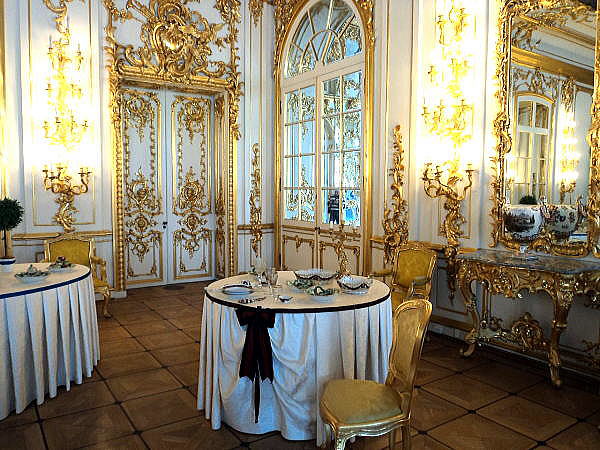 | ロシア短訪・総目次に戻る ・エカテリーナ宮殿施設・内装 主階段 チャペル 大ホール1 大ホール2 緑の柱の間 中国青壁の間 アレクサンダー一世の間 瑠璃色の間 緑色ダイニング リヨンの応接間1 リヨンの応接間2 アラベスクの広間 給仕人の間 パントリー ダイニング 各部屋の暖炉 ◆サンクトペテルブルグ市 ![]() ◆エカテリーナ宮殿の騎士のダイニングルーム Chevaliers' dining room of Catherine Palace http://eng.tzar.ru/museums/palaces/c_atherine/attendance_dining_room 大ホールにつづく最初の部屋は「騎士のダイニングルーム」と呼ばれる部屋で、これもラストレッリの設計により造られました。この部屋はさほど広くありませんので、建築家は多数の鏡や偽の窓を壁に配置し、部屋の広さと明るさを演出しました。 部屋の内装のしつらえは典型的なバロック様式であり、貝類や花々をデザインした彫刻や金メッキの飾りで覆われていました。特に、ドアの上の金メッキの彫刻装飾はすばらしいものでした。 1860年代に行った改装に際して、装飾の彫り部分に銀を施した後は、この部屋は、「銀の食堂」として知られるようになりました。この部屋は戦争までその外観を保持していましたが、 戦後の修復では、女帝エリザベータの宮廷建築家が彼女のためを意図して再び黄金の装飾を取り戻しました。 騎士のダイニングルームはコバルト色に塗られたタイルで装飾された複数段からなるストーブや、柱、壁龕(像やかめなどを置くために作られた壁のくぼみ)で飾られています。 このような暖房用ストーブはラストレッリがデザインして造られたもので、宮殿の主要な建物においては、各部屋に欠かせない重要な部分を構成しています。 Andrei Stakenschneiderの監督のもと、部屋の内装を再装飾する作業の一環として、19世紀半ばにダイニングルームに天井画が設置されました。 皇室の倉庫から、建築家は アレキサンダー大王と18世紀の芸術家であるK. Balkによるペルシア王ダリウスの家族の画布を選び、絵をはめ込んで漆喰の円形浮き彫り肖像画を完成させました。 戦争後にこのホールの装飾が改装された際に、別の絵画が天井の中央に設置されました。この作品は1700年代半ばの無名のロシア人画家によるもので、古代の神話、太陽神ヘリオスとイオス、夜明けの女神(国立ロシア博物館の収蔵品から)に触発されて描いたものでした。二人の神々は、年間の季節を具現化した人物像に囲まれて描かれています。 ![]() Kavaler dining room of Catherine Palace Source:Wikimedia Commons I, Sailko, CC 表示-継承 3.0, リンクによる ![]() エカテリーナ宮殿ダイニングルーム。 エカテリーナ大宮殿は、ロシア・サンクトペテルブルクの南東25kmにあるプーシキンの町にあるロシア皇帝の夏の住居でした。 居住地はロシアのエカテリーナ1世が夏の宮殿を建設した1717年に始まりました。1733年にアンナ皇后は宮殿を拡張しました。 しかし、エリザベート女王は母親の住居が古くなったことを知り、1752年5月に古い構造物が破壊し、ロココ様式のより壮大な建物に建て替えました。 建設は4年間続けられ、1756年7月30日には新しい325メートルの宮殿が開館しました。 Source:Wikimedia Commons By Dennis Jarvis from Halifax, Canada - Russia_1689 - Catherine Palace Dining Room, CC BY-SA 2.0, Link ![]() エカテリーナ大宮殿(建築物群):サドヴァヤ通り、7、プーシキン、プーシキン地区、サンクトペテルブルク Source:Wikimedia Commons By Fotodar - Own work, CC BY-SA 4.0, Link ![]() 騎士のダイニングループの天井、エカテリーナ宮殿、プーシキン、ロシア Source:Wikimedia Commons By Wayne77 - Own work, CC BY-SA 4.0, Link ![]() エカテリーナ宮殿の岸のダイニングルームの天井図 Source:Wikimedia Commons By Ljubimaja Muza - Own work, CC BY-SA 3.0, Link ![]() エカテリーナ大宮殿(建築物群):サドヴァヤ通り、7、プーシキン、プーシキン地区、サンクトペテルブルク Source:Wikimedia Commons Bella-2016 - 投稿者自身による作品, CC 表示-継承 4.0, リンクによる ![]() 騎士のダイニング・ルーム、エカテリーナ宮殿、プーシキン、ロシア Source:Wikimedia Commons Wayne77 - 投稿者自身による作品, CC 表示-継承 4.0, リンクによる つづく |