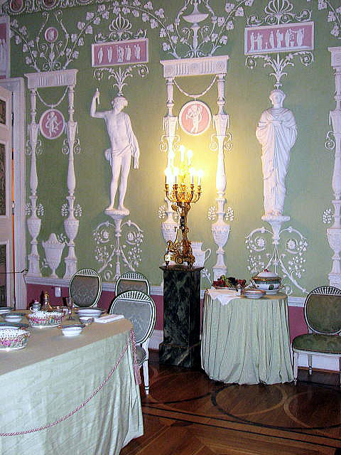 | ロシア短訪・総目次に戻る ・エカテリーナ宮殿施設・内装 主階段 チャペル 大ホール1 大ホール2 緑の柱の間 中国青壁の間 アレクサンダー一世の間 瑠璃色の間 緑色ダイニング リヨンの応接間1 リヨンの応接間2 アラベスクの広間 給仕人の間 パントリー ダイニング 各部屋の暖炉 ◆サンクトペテルブルグ市 ![]() 以下はエカテリーナ宮殿のグリーンのダイニングの部屋の写真です。 ![]() ツァルスコエ・セローのエカテリーナ宮殿の「緑のダイニングルーム」。チャールス・キャメロンのプロジェクトで1779年に設計されたもの。大祖国戦争で破壊されましたが、1957年~1959年の間に修復されました。 Source:Wikimedia Commons User:MatthiasKabel - 投稿者自身による作品, CC 表示 2.5, リンクによる ![]() エカテリーナ宮殿の緑のダイニングルーム Source:Wikimedia Commons I, Sailko, CC 表示-継承 3.0, リンクによる ![]() エカテリーナ宮殿 - 屋内 - 緑のダイニングルーム Source:Wikimedia Commons Edgar El, CC 表示 3.0, リンクによる ![]() ツァルスコエ・セロー、エカテリーナ宮殿。緑のダイニングルーム、細かい装飾は、イワン・マルトスによる漆喰の装飾を壁に施したもの。 Source:Wikimedia Commons Andrey Korzun - 投稿者自身による作品, CC 表示-継承 4.0, リンクによる ![]() エカテリーナ宮殿の緑のダイニングルーム Source:Wikimedia Commons Chatsam - 投稿者自身による作品, CC 表示-継承 3.0, リンクによる ![]() エカテリーナ宮殿の緑のダイニングルーム Source:Wikimedia Commons Chatsam - 投稿者自身による作品, CC 表示-継承 3.0, リンクによる ![]() 緑のダイニングルーム、エカテリーナ宮殿、ツァルスコエ・セロー 作者:チャールス・キャメロン Source:Wikimedia Commons 絵の概要:ペン・ブラシによる絵画。インドのインクで水彩画。49x65.5 cm 起源:イギリス、1780年代初期 搬入(収蔵)の経過:キャメロン作品アーカイブ(記録/保管)の一部として、チャールス・キャメロンの子孫からロンドンで1822年に入手したもの。 テーマ:建築 ![]() エカテリーナ宮殿の緑のダイニングルーム Source:Wikimedia Commons Chatsam - 投稿者自身による作品, CC 表示-継承 3.0, リンクによる つづく |