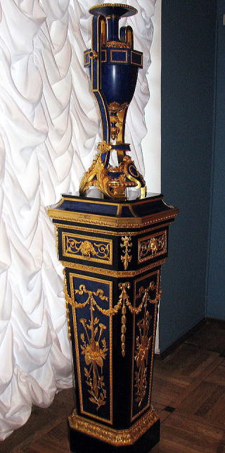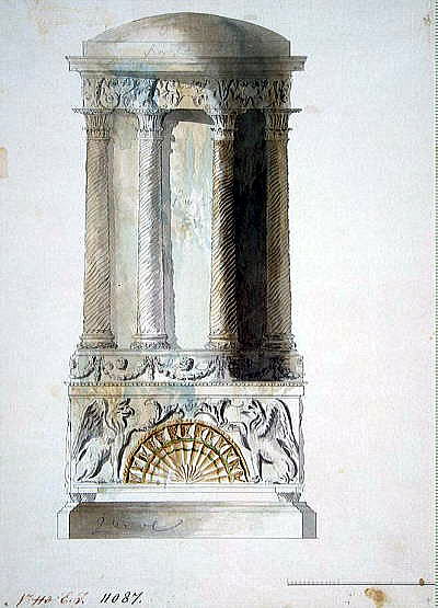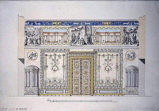 | ロシア短訪・総目次に戻る ・エカテリーナ宮殿施設・内装 主階段 チャペル 大ホール1 大ホール2 緑の柱の間 中国青壁の間 アレクサンダー一世の間 瑠璃色の間 緑色ダイニング リヨンの応接間1 リヨンの応接間2 アラベスクの広間 給仕人の間 パントリー ダイニング 各部屋の暖炉 ◆サンクトペテルブルグ市 ![]() ◆エカテリーナ宮殿 リヨンの部屋(2) Lyon drawing room of the Catherine Palace 以下はエカテリーナ宮殿のリヨンの応接間の中に飾られている品々の写真です。 ![]() ツァルスコエ・セロー、エカテリーナ宮殿の内部と家具の展示。リヨンの応接間からの品々。花台においた花瓶(リオンの絹、ラピスラズリ、金箔を貼ったブロンズ)。設計は、I.A.モニゲッティ。ロシア、ペテルゴフ宝石細工工房、1860年代。リオンの応接間のインテリアはチャールス・キャメロンが1770年代に造ったものです。それをI.A.モニゲッティが1860年代に改めて設計し直しました。大祖国戦争の間に完全に破壊されましたが、ツァルスコエ・セローから分けて疎開させていた品々は被害を免れました。 By Andrey Korzun - Own work, CC BY-SA 4.0, Link Source:Wikimedia Commons ![]() ツァルスコエ・セロー、エカテリーナ宮殿のアラベスクとリオンの間のストーブの設計図 作者:チャールス・キャメロン 作法:ペンとブラシ、インドのインクと水彩による。48×34cm オリジナル:英国、1780年代初頭 入手経路:キャメロンのアーカイブの一部として1822年にチャールス・キャメロンの先祖から入手したもの。 テーマ:建築 Source:Wikimedia Commons ![]() これはリヨンの応接間の内装 Source:Wikimedia Commons ![]() ツァルスコエ・セロー、エカテリーナ宮殿のリオンの応接間の天井の設計図 作者:チャールス・キャメロン 作法:ペンとブラシ、インドのインクと水彩による。 46.7x58.8 cm オリジナル:英国、1780年代初頭 入手経路:キャメロンのアーカイブの一部として1822年にチャールス・キャメロンの先祖から入手したもの。 テーマ:建築 Source:Wikimedia Commons ![]() ツァルスコエ・セロー、エカテリーナ宮殿のリオンの応接間の戸口の高さ 作者:チャールス・キャメロン 作法:ペンとブラシ、インドのインクと水彩による。 40x60 cm オリジナル:英国、1780年代初頭 入手経路:キャメロンのアーカイブの一部として1822年にチャールス・キャメロンの先祖から入手したもの。 テーマ:建築 Source:Wikimedia Commons つづく |