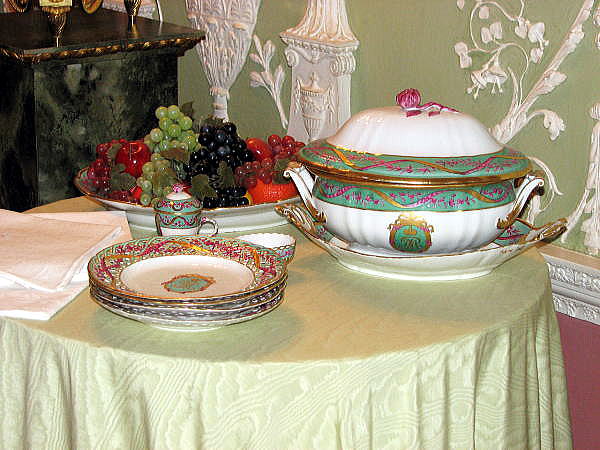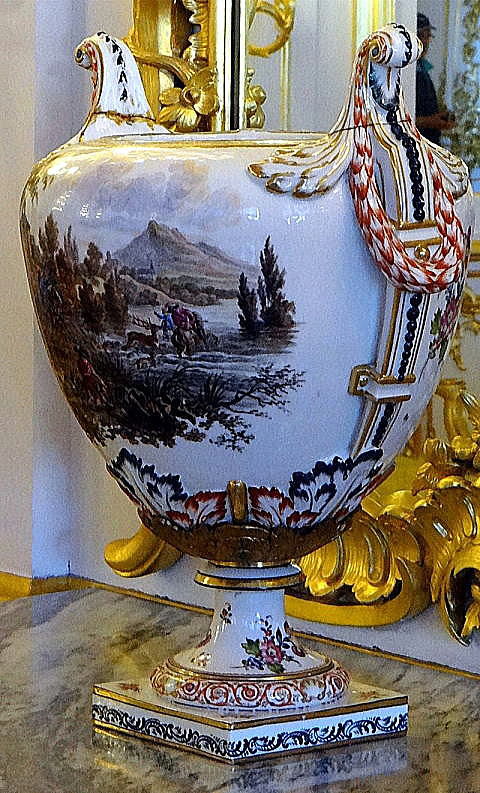 | ロシア短訪・総目次に戻る ・エカテリーナ宮殿のアート マイセン磁器 主階段・磁器 ダイニング磁器 絵画 ◆サンクトペテルブルグ市 ![]() ◆エカテリーナ宮殿 ダイニングの磁器 Porcelain in the Dining of Catherine Palace 以下はエカテリーナ宮殿のダイニングの磁器です。 ![]() ツァルスコエ・セロー、エカテリーナ宮殿。 緑のダイニングルーム。 「モスクワ・ディナー食器セット」の中からスープを入れる蓋付きの深皿と皿などのアイテムでモノグラム(頭文字) "P"と "M"(皇太子パーヴェル・ペトロヴィッチのPと彼の妻皇后マリア・ヒョードロブナのM)をあしらっています。F. ガードナー製造工場、ロシア、1780年代。 Source:Wikimedia Commons By Andrey Korzun - Own work, CC BY-SA 4.0, Link 以下はマイセンの時期で紹介したものの再掲載です。 ![]() ツァールスコエ・セロー。エカテリーナ宮殿、ホワイト・ステート・ダイニングルーム。マイセンのディナー用食器セット。ドイツ、マイセン1750年代。中央には:ガゼボ-カプリス(西洋風の可愛らしいあずまや)の柄で飾った磁。インペリアル磁器工場、ロシア、1760年代。 Source:Wikimedia Commons By Andrey Korzun - Own work, CC BY-SA 4.0, Link ![]() エカテリーナ宮殿 - インテリア - 家具(プーシキン、ロシア) Source:Wikimedia Commons By Gzen92 - Own work, CC BY-SA 4.0, Link ![]() エカテリーナ宮殿の控えの間、プーシキン、ロシア Source:Wikimedia Commons By Wayne77 - Own work, CC BY-SA 4.0, Link ![]() エカテリーナ宮殿、アレクサンダー1世の中国絵画の間、プーシキン、ロシア Source:Wikimedia Commons By Wayne77 - Own work, CC BY-SA 4.0, Link ![]() エカテリーナ宮殿、磁器食器 Source:Wikimedia Commons By © Pierre André - Own workThis file was uploaded with Commonist., CC BY-SA 4.0, Link ![]() エカテリーナ宮殿、磁器食器 Source:Wikimedia Commons By © Pierre André - Own workThis file was uploaded with Commonist., CC BY-SA 4.0, Link なお、ロマノフ王朝の陶磁器については以下もご覧ください。 ◆帝国陶磁器工房美術館 施設概要・作品1(ロシア) 作品2(ロシア) 作品3(ロシア) 作品4(ロシア) 作品5(ロシア) 作品6(ロシア) 作品7(ロシア) 作品8(イタリア・マイオリカ) つづく |