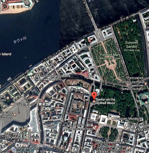 | ロシア短訪・総目次に戻る ・血の上の救世主教会 概要 歴史 建築 内装 イコン ◆サンクトペテルブルグ(Saint Petersburg) サンクトペテルブルク歴史地区と関連建造物群 ![]() サンクトペテルブルグ市中心に観光客が必ず行く、それも最初に行くのが、この血の上の救世主教会のはずです。それほどこの血の上の救世主教会はさまざまな意味でロマノフ朝やサンクトペテルブルを象徴する教会と言えます。 というのも、寺院に、血の上の...と衝撃的な名が付いているからです。 当然,英文名でもChurch of the Spilled BloodとBloodがついています。事実、この教会の敷地のなかでロマノフ王朝の皇帝、アレクサンドル2世への暗殺されが行われ、二度目の手榴弾の爆発で皇帝は亡くなっています。 ![]() Собор Воскресения Христова (≪Спас на крови≫) (Санкт-Петербург и Лен.область, Санкт-Петербург, канала Грибоедова наб., 2-а) 血の上の救世主教会 Source:Wikimedia Commons Horvat - 投稿者自身による作品, パブリック・ドメイン, リンクによる 以下は、血の上の救世主教会の位置です。エルミタージュ美術館の東、近くにはネヴァ河が流れており、そこに流れ込む運河もあります。 ![]() 出典:グーグルマップ 下の地図では右上、プーシキンの家博物館とプーシキン像の間、グリボエードフ運河がモイカ川(Moika)から分流する地点にあります。 私達が行った2017年2月は、真冬、運河や川は凍結していました。近くには運河や川があるため、川風も強く、もとよりマイナス17℃近くの気温です。体感温度ははるかにそれより比較感じられました。 行き方ですが、最寄駅は地下鉄2号(青)線のネフスキープロスペクト駅もしくは3号(緑)線ゴスチニードヴォール駅で下車、徒歩約3分と地下鉄駅からは至近にあります。 ![]() 現在のサンクトペテルブルグ中心部 出典:ワールド航空サ-ビス 以下をマウスでクリックすることで、血の上の救世主教会を含め360度のパノラマビューがご覧になれます。 ※ グーグルマップによる360度パノラマビュー 下は凍結した血の上の救世主教会を背景にした池田こみちです。足元の下のグリボエードフ運河を見ると凍結していることが分かります。 この教会は、サンクトペテルブルグでは珍しいカラフルなタマネギ型のデザインとなっています。一見したところ、モスクワの赤の広場にあるワシリー大聖堂に似ています。 下はモスクワの赤の広場にあるワシリー大聖堂です。 ![]() Source:Wikimedia Commons V1P3R - 投稿者自身による作品, パブリック・ドメイン, リンクによる 下の2枚の写真は血の上の救世主教会の前の池田こみちと青山貞一です。 ![]() 血の上の救世主教会の前の池田こみち 撮影:青山貞一 Nikon Coolpix S9900 2017-2 ![]() 血の上の救世主教会の前の青山貞一 撮影:池田こみち Nikon Coolpix S9900 2017-2 下は冬以外の血の上の救世主教会の景色です。 ![]() Iglesia del Salvador sobre la sangre derramada Source:Wikimedia Commons ![]() A better color enhancement of one of my photos... Church of the Spilled Blood Source:Wikimedia Commons ◆血の上の救世主教会 Church of the Spilled Blood 概要 血の上の救世主教会(Храм Спаса на Крови、Church of the Spilled Blood)は、ロシア、サンクトペテルブルクにあるロシア正教会の聖堂です。公式名は、ハリストス復活大聖堂(Собор Воскресения Христова)と言います。 このほか、単に血の上の教会(Church on Spilt Blood)の名称でも知られています。 上述したようにこ名称は、1881年3月13日のロシア皇帝アレクサンドル2世暗殺によるもので、教会が建つ場所は、皇帝遭難の地です。教会の高さは、94mあります。これはサンクトペテルブルクにあっては、聖イサク大聖堂に次ぐ高さです。 なお、この血の上の救世主教会は、19900年に「サンクトペテルブルグ歴史地区と関連建造物群」の名称で世界遺産(文化遺産)に登録されています。