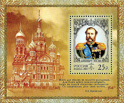 行幸先から帰る皇帝の乗った御料車が運河に沿って通る中、女性革命家ソフィア・ペロフスカヤによって指揮された「人民の意志」のテロリストは皇帝を狙って手榴弾を投げました。 手榴弾は2人のコサック衛兵を負傷させましたが、皇帝は無事でした。しかし現場を見るために御料車を降りた皇帝の足下に別のテロリストが爆弾を転がして爆発させ、瀕死の重傷を負った皇帝は担ぎ込まれた冬宮で一時間後に崩御しました。 ![]() アレクサンドル2世 Source:Wikimedia Commons オリジナルのアップロード者は英語版ウィキペディアのHephaestosさん - en.wikipedia からコモンズに移動されました。, パブリック・ドメイン, リンクによる 教会の建立は、アレクサンドル2世の跡を継いだアレクサンドル3世によって先帝を弔うために行われました。 教会はグリボエードフ運河の河畔で、アレクサンドル2世終焉の地に建設されました。この地はグリボエードフ運河がモイカ川(Moika)から分流する地点にあり、さらにモイカ川がフォンタンカ川(Fontanka)から分流する地点にも比較的近くなっています。 建設資金は、帝室であるロマノフ家のほか、広く一般の献金によってまかなわれました。工事は1883年に着工されましたがアレクサンドル3世在位中には完成せず、教会の完成を見たのは次のニコライ2世の治世に入って13年目の1907年です。 ![]() サンクトペテルブルク、グリボエードフ運河堤防の隣にある 血の上の救世主教会 Source: Wikimedia Commons ![]() サンクトペテルブルクのセカンドガーデンブリッジ付近の モイカ川の河畔から見てる血の上の救世主教会 Source: Wikimedia Commons Fumihiko Ueno, CC 表示 3.0, リンクによる ロシア革命 ロシア革命による社会主義体制は、教会に大打撃を与えました。教会はソビエト政権によって略奪され、また。また教会内部も損害を被りました。ソ連政府の指令で1930年代初期に教会は閉鎖されました。第二次世界大戦中は野菜倉庫として使われています。 人々は教会を「ジャガイモの上の教会」「ジャガイモの救世主」と冷笑的に呼んでいました。教会は他の建築物同様、ナチスドイツによるレニングラード包囲戦で損害を被っています。さらに戦後は近くのオペラ劇場のための倉庫として使用されていまた。 ![]() ロシアの切手に描かれた地の上の救世主教会 Source:Wikimedia Commons Автор: Почта России - http://filtorg.ru/, Общественное достояние, Ссылка ソ連崩壊後、現在 1970年7月、血の救世主教会の管理権は聖イサーク大聖堂(同聖堂も、この時点では、公共博物館として使用されていた)に譲渡されました。 聖イサク大聖堂の収入は血の上の救世主教会の復旧へ集約されて行きました。27年に渡る修復工事を終え、1997年8月血の上の救世主教会は、およそ60年ぶりに一般公開されました。 しかし、血の上の救世主教会は、ロシア革命以前から公的な礼拝としてではなく暗殺されたアレクサンドル2世を慰霊していたロマノフ家の施設であったという理由で正教会の大聖堂としての完全な復活はなされず、公的な奉神礼は殆ど行われる事がなく、麗々しいモザイク博物館として再開することとなりました。 但し、聖堂の性格から正教会の永眠者のための祈りであるパニヒダは稀に行われています。現在サンクトペテルブルクの主な観光名所のうちのひとつとなり、多くの人々が参観に訪れるようになっています。 ![]() 1883~1908。 ロシアの切手、13.00ルーブル、2012年7月17日 ロシアのサンクトペテルブルクにある血の上の救世主教会が描かれています。 建築家Alfred ParlandとArchimandrite Ignatius(Malyshev)の設計(1811-1897)。 Source:Wikimedia Commons 下は血の上の救世主教会のライトアップされた夜景です。 ![]() 血の上の救世主教会のライトアップされた血の上の救世主教会の夜景 Source:Wikimedia Commons ![]() 運河の先にある血の上の救世主教会のライトアップされた 血の上の救世主教会の夜景 Source:Wikimedia Commons つづく |