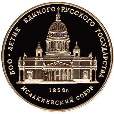 特別に指名された審査委員が複数のデザインを審査した中には、ナポレオンお抱えの設計者シャルル・ペルシエールのアトリエで学んだ、フランス生まれの建築家、アウグスト・デ・モンフェランド(1786年~1858年)のものが含まれていました。 モンフェランドの設計は、その4つの同じような傾斜の8本の円柱を持つ柱廊(Octastyle Porticos)が無味乾燥で退屈な調子であるとして、何人かの審査委員から批判されました。 また、その設計は、巨大な面をもっているにもかかわらず、教会の建物はずんぐりした感じに見えて、それほど印象的ではないことも指摘されました。 委員会のメンバーには、著名なロシアの建築家もいましたが、古く不安定な土台の上に新しい巨大な建物を建てる必要性について特に懸念を示していました。 皇帝は、重厚な帝国様式の建築様式を好んでいたのですが、モンフェランの嗜好が出たことにより、(デザイン間で生じた)争いの解決に踏み込まなければなりませんでした。 この大聖堂の建設には、モンフェランドの指示のもと、1818年から1858年の40年を要しました。建築を安全な物とするため、サンクトペテルブルクのフェンランド(沼地)に2万5千本の杭を打ち込むことで、大聖堂の基礎が強化されました。 柱廊式玄関の巨大な柱を建てるために、革新的な方法が編み出されました。 大聖堂の建設コストは、100万金ルーブルという当時では信じられない金額にまで膨らみました。 ソ連時代、この建物は宗教的な虚飾を剥奪されました。 1931年、ソビエト時代の大聖堂は、宗教と無神論の歴史博物館に取って代わり、鳩の彫刻は取り除かれ、フーコー振り子に置き換えられました。 1931年4月12日、フーコーの振り子が最初に市民にデモンストレーションとして公開され、コペルニクスの理論が視覚化されました。 1937年、博物館は大聖堂の博物館に変わり、旧コレクションは宗教史博物館(カザン大聖堂に位置しています)に移されました。 第二次世界大戦の間、敵の戦闘機から目立たないように教会のドームは灰色のペンキで塗られました。その天井には、測地線の交点が配置され、ドイツの砲兵砲の位置を決定するために使われていました。 下の写真は独ソ戦におけるレニングラード包囲戦の最中に撮影されたものです。兵士が武器を運ぶ背後に聖イサク大聖堂が見えます。 ![]() レニングラードの包囲の中の聖イサク大聖堂 Source:Wikimedia Commos Автор: Участник:Dmitrij354 - Отсутствует информация об источнике!Для несвободных файлов (не соответствующих определению свободного произведения культуры) эта информация является обязательной для выполнения критериев добросовестного использования № 4 и 10.Вы можете попробовать найти подходящий источник через сервисы поиска по изображениям: TinEye или Google., Общественное достояние, Ссылка 下は1941年、レニングラード(現在のサンクトペテルブルグ)の聖イサク大聖堂の周辺に配備されたレニングラード対空砲火で防衛中の兵士です。円柱(石柱)が見えるのが聖イサアク大聖堂です。 ![]() レニングラード対空砲火で防衛中の兵士です。円柱(石柱)が見えるのが聖イサアク大聖堂 Source:Wikimedia Commons By RIA Novosti archive, image #5634 / David Trahtenberg / CC-BY-SA 3.0, CC BY-SA 3.0, Link ![]() The fire of anti-aircraft guns deployed in the neighborhood of St. Isaac's cathedral during the defense of Leningrad (now called St. Petersburg, its pre-Soviet name) in 1941. 1941年、レニングラード(現在のサンクトペテルブルグ)の聖イサク大聖堂の周辺に配備されたド対空砲火で防衛中の兵士。ドームと石柱が見えるのは聖イサク大聖堂 Source:Wikimedia Commons By Unknown author - "The Eastern Front in Photographs", John Erickson, Public Domain, Link ロシア革命後は、ソビエト政権の下で博物館となりました。他のサンクトペテルブルクの建造物同様、第二次世界大戦に危機に見舞われます。 独ソ戦におけるレニングラード包囲戦では、聖イサーク大聖堂の黄金のドームはドイツ軍にとって絶好の標的と成り得たため、ソ連側はドームを灰色に塗装し直しました。 ソ連崩壊後、大聖堂としての活動を再開し、祭日における奉神礼が行われています。 1992年、共産主義の崩壊とともに、博物館は廃止され、大聖堂での定例的な礼拝活動が再されましたが、左側の礼拝堂でのみ行われていました。 大聖堂の本堂(中央礼拝堂)は、祝祭日のみの礼拝時にのみ使用されます。 2017年1月10日、サンクトペテルブルグの市長であるゲオルギー・ポルタフチェンコは、大聖堂がロシア正教会に移管されたことを発表しました。 下は、 1991年9月3日ソ連国家銀行は≪gosudarstva500周年記念として、サンクトペテルブルクの聖イサアク大聖堂を刻印した50ルーブルの記念硬貨を発行しました。そのコインです。 ![]() 1991年9月3日、ソ連国家銀行は≪gosudarstva500周年記念で発行された 