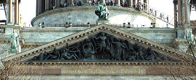 | ロシア短訪・総目次に戻る ・聖イサク大聖堂 概要 歴史 外装・外観 ドーム 建築設計 建築技術 内装 イコン 展望台 ◆サンクトペテルブルグ(Saint Petersburg) サンクトペテルブルク歴史地区と関連建造物群 ![]() ◆ドーム(丸天井)・屋根 大聖堂のメインドームは101.5メートル(333フィート)の高さがあり、純金が施されています。 ドーム部分には、ジョセフ・ヘルマンの手による12の天使の彫像が設置されています。これらの天使の彫刻は、その当時の彫刻の作り方として伝統的な方法だった青銅の鋳物(ブロンズキャスティング)にかわって電鋳(エレクトロタイピング)による新しい方法で最初に作られた大きな彫刻であったようです。 Montferrandによるドーム設計は、支持鋳鉄構造に基づいています。 これは、ネビヤンスクの斜塔(1732年)とマインツ大聖堂(1826年)の塔の後につくられた鋳鉄製のキュポラとしては、第三番目のものとして、歴史的な例でした。 下は聖イサク大聖堂の大ドームです。 ![]() 聖イサアク大聖堂のドーム Source:Wikimedia Commons 下は大ドームの先端部分です。 ![]() 聖イサク大聖堂のキューポラ Source:Wikimedia Commons By Dmitry Ivanov. - Own work, CC BY-SA 4.0, Link 下はドームの周辺に配置された青銅の天使たちです。 ![]() angel, religion, church, angels, saint isaac's cathedral Source:Wikimedia Commons ![]() angel, religion, church, angels, saint isaac's cathedral Source:Wikimedia Commons 下は聖イサク大聖堂の4つある小さなドームからのネヴァ川遠望です。 ![]() 聖イサク大聖堂の4つある小さなドームからのネヴァ川遠望 Source:Wikimedia Commons 以下は大ドームの周りに4つある小さなドームの一つです。小ドームそれぞれの下にも礼拝堂があります。 ![]() 聖イサク大聖堂の4つある小さなドーム Source:Wikimedia Commons 下は聖イサク大聖堂の切妻の屋根部分に置かれた青銅の像です。 ![]() Source:Wikimedia Commons 下は、その切妻形式の屋根です。 ![]() Северный фронтон. ≪Воскресение Христа≫ 入妻形式の屋根 下は聖イサク大聖堂の浅浮彫りです。 ![]() Барельеф на Исаакиевском соборе 聖イサク大聖堂の浅浮き彫り Source:Wikimedia Commons ![]() Собор Исаакиевский (Санкт-Петербург и Лен.область, Санкт-Петербург, Исаакиевская площадь) 聖イサク大聖堂の浅浮き彫り Source:Wikimedia Commons ![]() Барельей на Исаакиевском соборе 聖イサク大聖堂のバレイリー Source:Wikimedia Commons つづく |