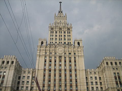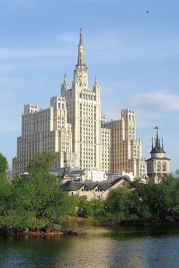 | ロシア短訪・総目次に戻る ・モスクワシティ・大学 モスクワ・シティ モスクワ大学概要 モスクワ大学学部 ・スターリン様式建築物 スターリンビル概要・歴史 スターリンビル外観1(ロシア、セブンスターズ) スターリンビル外観2(東欧) スターリンビル外観3(中国、北朝鮮) ◆モスクワ市 ![]() モスクワ市の紋章 ◆スターリンビル 外観1 ロシア、セブンスターズ 以下にスターリンビル、スターリン様式の典型となるビルの外観を紹介します。最初はモスクワにあるセブンシスターズです。 以下はモスクワにあるスターリン様式ビル、セブンシスターズの位置です。 ![]() モスクワにあるスターリン様式ビル、セブンシスターズの位置 参考:モスクワにあるスターリン様式ビルの位置 ※間近に見るセブンシスターズの星 ロシアNOW <ロシア> ・モスクワ大学 詳細はモスクワ大学をご覧いただくとして、雀が丘の丘の上にそそり立つモスクワ大学本館ビルは、まさに数あるスターリン様式のビルの象徴的な存在であると言ってよい建築物です。現在、モスクワ大学に限らず、モスクワにあるスターリン様式の重厚、超高層で、巨大なビルはいずれも、ライトアップをしており、非常に稀有な光景を演出しています。 ![]() スターリン様式の例。 モスクワ大学(高さ約240m) Source:Wikimedia Commons Alexey Kljatov from Moscow, Russia - Lomonosov Moscow State University (MSU), CC 表示 2.0, リンクによる ・ロシア外務省 現在、ロシア外務省が入っているビルもスターリン様式の重厚で超高層、巨大なビルです。 ロシア外務省( Министерство иностранных дел России、略称:МИД、MID)は、ロシア連邦における外交事務を担当する中央省庁のひとつで、プーチン大統領下での重要な外交をつかさどる官庁です。 ![]() 出典:アレクセイ・フィリポフ/ロシア通信、アンドレイ・ステニン/ロシア通信 ![]() ロシア外務省(モスクワ) Source:Wikimedia Commons Автор: Alvesgaspar - собственная работа, CC BY-SA 3.0, Ссылка ・ソビエト連邦運輸建設国家委員会 下はセブンシスターズのひとつ、ソビエト連邦運輸建設国家委員会 Транспортного строительства СССР Государственный комитет の巨大なビルです。 ロシア外務省とソビエト連邦運輸建設国家委員会のビルは非常によく似ていますが、両者は別の位置にあり、別物です。実際、ロシア語でТранспортного строительства СССР Государственный комитетを検索するとロシア外務省のビルが出てくるものがありますが、それは間違いのはずです(笑)。 ![]() ソビエト連邦運輸建設国家委員会 Source:ロシア・スターリン様式建築の部屋 ・ホテル・ウクライナ 次はホテル・ウクライナです。 ![]() ホテル・ウクライナ(モスクワ) Source:Wikimedia Commons Kotofeum - 投稿者自身による作品, CC 表示-継承 4.0, リンクによる ![]() ホテル・ウクライナ(モスクワ) Source:Wikimedia Commons By Ctac - Own work, CC BY-SA 3.0, Link ・ホテル・レニングラード 次はホテル・レニングラードです。 ![]() ホテル・レニングラード(モスクワ) Source:Wikimedia Commons Grey Devey - 投稿者自身による作品, CC 表示-継承 3.0, リンクによる ![]() ホテル・レニングラード(モスクワ) Source:Wikimedia Commons CC BY-SA 3.0, Link ・文化人アパート 車でモスクワを回っていると、以下の巨大なビルが見えます。超高層で重厚、巨大なので、かなり遠くから文化人アパートの雄姿をみることができます。 ![]() 文化人アパート(モスクワ) Source:Wikimedia Commons Автор: Dmitry Rozhkov - собственная работа, CC BY-SA 3.0, Ссылка ![]() 別の角度から撮影した文化人アパート(モスクワ) 撮影青山貞一 Nikon Coolpix S9900 2017-2 ・芸術家アパート 下はモスクワの芸術家アパートです。文化人アパートと似ていますが、よく見ると異なります(笑)。 ![]() 芸術家アパート(モスクワ) 出典:グーグルマップストリートビュー つづく (ロシア以外のスターリンビルへ) 総目次に戻る |
