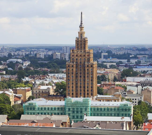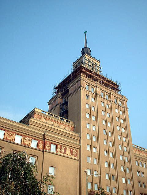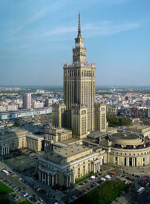 | ロシア短訪・総目次に戻る ・モスクワシティ・大学 モスクワ・シティ モスクワ大学概要 モスクワ大学学部 ・スターリン様式建築物 スターリンビル概要・歴史 スターリンビル・外観1(ロシア、セブンスターズ) スターリンビル・外観2(東欧) スターリンビル・外観3(中国、北朝鮮) ◆スターリンビル 外観2 東欧(ポーランド、チェコ、バルト三国) 以下にスターリンビル、スターリン様式の典型となるビルの外観を紹介します。 <ポーランド> ・文化科学宮殿(ワルシャワ) これはポーランドのワルシャワ駅のすぐ隣にある文化科学宮殿です。地元の市民は、皮肉を込めてスターリンからの贈り物と言っていました。この時、私たちはナチス・ドイツがポーランド各地に設置したアウシュヴィッツ、ビルケナウ、マイダネク、ベルゼック、ソビボルなどの強制収容所やザモシチなどを視察しました。アウシュヴィッツ以降はすべてにレンタカーで現地に行きました。そのポーランドで最初に向ったのが首都ワルシャワです。文化科学宮殿はワルシャワ鉄道駅のすぐ隣にそびえていました。 文化科学宮殿は、ポーランドの首都ワルシャワにある超高層建築物。2006年現在、世界で164番目に高い高層建築物です。このスターリン様式の建築は、スターリンによってポーランドに贈与という形式で建設され、当初、その名称も、ヨシフ・スターリン名称(または記念)文化科学宮殿でしたが、スターリンの死後、非スターリン化に伴い、「ヨシフ・スターリン」の名称は削除されました。 文化科学宮殿は、高さ237メートル、42階立て、尖塔の高さは49メートルあり、総室数は3288室。地震の少ない地域のため柔構造を取る必要がなく当時の技術で作ることが出来ました。全体の総床面積は2万3000平方メートルで、その内部には3000人を収容できる映画館、劇場、博物館、書店、会議場及び展示場を要しています。東欧革命による社会主義体制崩壊後は、企業のオフィスが多数入居しています。また、FMラジオ及びテレビ放送の送受信場としての役割も担っています。 ![]() ワルシャワに建てられた文化科学宮殿 Source:Wikimedia Commons Kescior (トーク · 投稿記録) - Self-work (eigene Arbeit), CC 表示-継承 3.0, リンクによる ![]() ワルシャワに建てられた文化科学宮殿 Source:Wikimedia Commons Nnb - 投稿者自身による作品, CC 表示-継承 4.0, リンクによる <チェコ> ・プラハ・インターナショナルホテル(プラハ) 以下はチェコのプラハ・インターナショナルホテル、現ホテルクラウンプラザ・プラハです。私たちが2009年、スペインのバルセロナで国際学会があり参加した際、チェコのプラハに出かけた際に宿泊したホテルです。やはり非常に重厚な建築物であり、左右完全に対象となっています。このホテルからチェコの宮殿や大聖堂には歩いて15分ほどで行けます。 ![]() ホテル・インターナショナル・プラハ(チェコ) Source:Hotel International Prague) 当時は、このホテルがいわゆるスターリン様式のビルとは知りませんでしたが、近くで見ると以下の写真のように、大変重厚で何か近寄りがたい感じがしたことを覚えています。このホテルクラウンプラザの系列では、カナダのハリファックスのホテルにも現地視察、講演の関係で宿泊したことがありますが、落ち着いたすばらしいホテルでした。 ![]() ホテル・インターナショナル・プラハ(チェコ) 撮影:青山貞一 Nikon Coolpix 2008-10 <バルト三国ラトビア> ・ラトビア科学アカデミー(リガ) これはバルト三国の真ん中の国、ラトビアの首都リガにあるラトビア科学アカデミーの建物です。この科学アカデミーは ラトビアの最高の科学機関、自然科学、工学科学、社会科学や人文科学の分野で300人の以上の科学者が研究に励んでいます。 私たちが2010年にバルト三国に現地視察で出かけたとき、南側のリトアニアのカナウスから十字架の丘を慰霊し、その後、かなり時間をかけ北上した時、最初に見えたのがこのラトビアのリガにある科学アカデミーの高層ビルでした。 高さは108mあり、当初はビルの頂上にソビエトの赤い星がつけられていましたがソ連崩壊後取り払われたといいます。1950年代から2004年までラトビア一高い高層ビルでした。今でもその名の通りラトビアの科学の最前線をゆく研究機関だといいます。 ちなみに、ラトビア科学アカデミーは、リガの旧市街地からかなり離れたところに立地されており、旧市街の歴史的町並みを壊すことはありません。 ![]() ラトヴィアの首都、リガの旧市街地 ource:Wikimedia Commons ![]() バルト三国のラトビアのリガにある科学アカデミーの建物(リガ) Source:Wikimedia Commons ![]() バルト三国のラトビアのリガにある科学アカデミーの建物(リガ) 出典:Riga, Hochhaus der Lettischen Akademie der Wissenschaften gerdb つづく (ロシア以外のスターリンビルへ) 総目次に戻る |