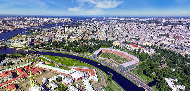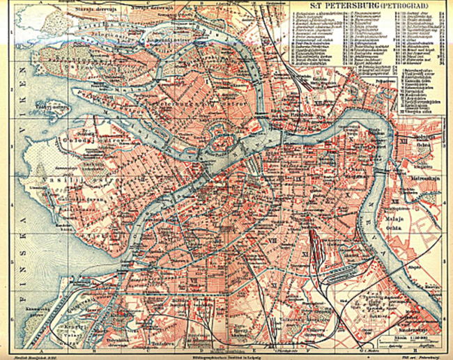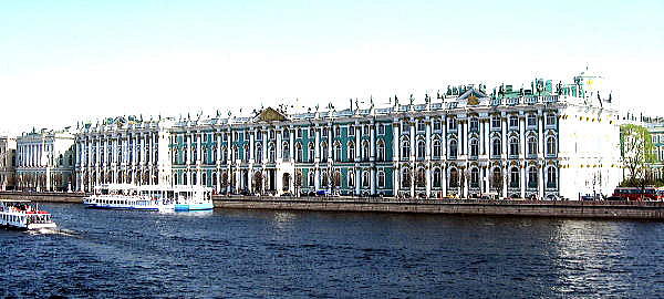 第一次世界大戦開戦以降(1914 - 24年)はペトログラード(Петроград)、ソビエト連邦時代(1924 - 91年)はレニングラード(Ленинград)と呼ばれました。英語圏ではセントピーターズバーグ(Saint Petersburg)と呼ばれています。 都市の名は「聖ペテロの街」を意味します。これは、建都を命じたピョートル大帝が自分と同名の聖人ペテロの名にちなんで付けたものです。 隣国のフィンランドではサンクトペテルブルクを、ペテロのフィンランド語名そのままにピエタリ (Pietari) の名で呼んでいます。 当初はオランダ語風にサンクト・ピーテルブールフ (Санкт-Питер-Бурх) と呼ばれていましたが、後にドイツ語風にサンクト・ペテルブルク (Санкт-Петербург) と呼ばれるようになります。 ロシア帝国の首都として長く定着していました。 ![]() 帝政ロシア時代のサンクトペテルブルグ(St.Petersberg)主要部 Source:Wikimedia Commons 1914年、第一次世界大戦が始まりロシアがドイツと交戦状態に入ると、ロシア語風にペトログラード (Петроград) と改められました。さらにロシア革命によりソビエト連邦が成立すると、1924年よりレーニンにちなんでレニングラード (Ленинград, リニングラート) と改称され、この名称が半世紀続きました。 しかし、ソ連崩壊を受けて、1991年に住民投票によってロシア帝国時代の現在の名称に再び戻りました。ロシア人の間ではピーテル (Питер, ピーチェル) の愛称で呼ばれています。州名は従来どおりレニングラード州となっています。 ◆現在のサンクトペテルブルグ市中心部 下の地図は、現在のサンクトペテルブルグ主要部と中心部を表しています。 サンクトペテルブルグの中心部は、最初の地図にあるように大ネヴァ河に面しており、その対岸には、ヴァシシレオストオルスキー島、トログラツキー島という2つの大きな島となっています。また、その中心部にもいくつもの川や運河が流れており、まるでイタリアのヴェニス(ヴェニチア)のようなまちとなっています。実際、「北のヴェネチア」とも比喩されている美しい世界的な文化都市です。 ![]() サンクトペテルブルグ(St.Petersberg)主要部 出典:グーグルマップ ![]() 訪問時のサンクトペテルブルグ中心部 出典:ワールド航空サ^-ビス ![]() 現在のサンクトペテルブルグの街並み、たくさんある運河はどれも凍結しています 撮影:青山貞一 Nikon Coolpix S9900 20017-2 サンクトペテルブルグの中心分には、世界的に有名な美術館、エルミタージュ美術館(宮殿)、ピョール大帝の夏の宮殿、ユスコフ宮殿、メンシコフ宮殿など多くの博物館、、聖イサク大聖堂、カザン聖堂、血の上の救世主教会などの寺院、またマリインスキー劇場など世界的に有名な劇場、さらにドフトエフスキー博物館、ロシア文学博物館、プーシキンの家博物館、などの博物館、プーシキン像、聖堂の騎士像、ニコライ一世像などの像があります。 またこのサンクトペテルブルグ中心部から南東25kmの郊外には、元プーシキンスキー市、現在はサンクトペテルブル市の一部となっている地に、エカテリーナ宮殿やエカテリーナ公園などその昔、ロマノフ王朝の避暑地となっていたツァールスコエ・セローがあり数多くの歴史劇建築物が今なおそそかしこにあります。 以下は上からエルミタージュ美術館、エカテリーナ宮殿、聖イサク大聖堂、カザン聖堂 ![]() エルミタージュ美術館 Source:Wikimedia Commons Dezidor - 自ら撮影, CC 表示 3.0, https://commons.wikimedia.org/w/index.php?curid=4085546による ![]() エカテリーナ宮殿 Source:Wikimedia Commons Stan Shebs, CC 表示-継承 3.0, リンクによる ![]() サンクトペテルブルグにある聖イサク大聖堂 Source:Wikimedia Commons Автор: Dezidor - Сфотографировано загрузившим, CC BY 3.0, Ссылка ![]() カザン聖堂(カザン大聖堂、カザン寺院) Source:Wikimedia Von A.Savin (Wikimedia Commons · WikiPhotoSpace) - Eigenes Werk, CC BY-SA 3.0, Link ![]() 血の上の救世主教会 Source:Wikimedia Commons