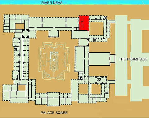 ここでは、エルミタージュ美術館(本館、冬の宮殿)にある主要施設とその位置を順を追って紹介致します。