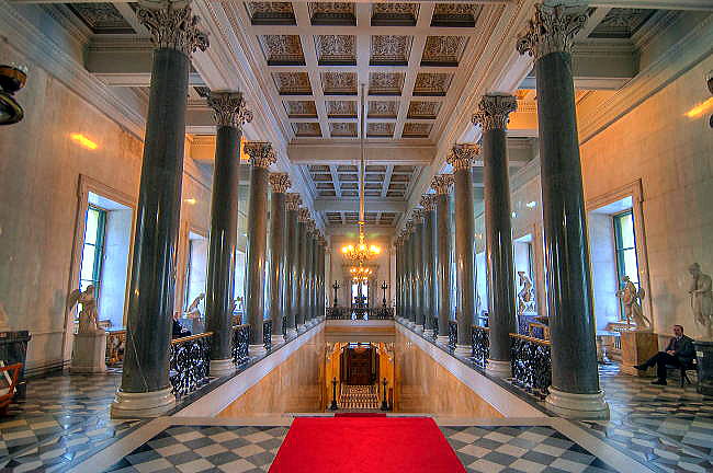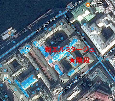 | ロシア短訪・総目次に戻る ・エルミタージュの階段 ヨルダンの階段(本館、冬宮) 評議会の階段(大エルミタージュ) 新エルミタージュの階段他 大教会の階段 ◆サンクトペテルブルグ(Saint Petersburg) サンクトペテルブルク歴史地区と関連建造物群 ![]() サンクトペテルブルグ市の紋章 サンクトペテルブルグ市旗 ◆その他の階段 新エルミタージュの階段 エルミタージュには、「ヨルダンの階段」、「評議会の階段」とは別に、素晴らしい階段があります。この階段は重厚なポーチで有名な新エルミタージュの中央にあります。 下のグーグルマップに新エルミタージュの階段の位置を描き込んでみました。他の2つの階段と異なり、この階段は、折れ曲がらず、踊り場を挟みストレートに2階、また1階に通じています。 ![]() Source:グーグルマップストリートビュー 以下はグーグルマップストリートビューで見た新エルミタージュの会談です。これもなかなか卓越した素晴らしい階段です。 ![]() 出典:グーグルマップストリートビュー ![]() 撮影位置:おおむね人形がある位置 ![]() 出典:グーグルマップストリートビュー ![]() 撮影位置:おおむね人形がある位置 ![]() 出典:グーグルマップストリートニュー 下は1853年、新エルミタージュのほぼ中央にある階段をホールから見た絵画です。写真より雄大に見えます。 ![]() Interiors of the New Hermitage. The Main Staircase and the Vestibule Author: Konstantin Andreyevich Ukhtomsky Interiors, Drawings, Watercolour, 40.1x29.2 cm Origin: Russia, 1853 Source of entry: from the artist, 1853 Theme: Architecture Source: Konstantin Andreyevich Ukhtomsky Interiors of the New Hermitage. The Main Staircase and the Vestibule ![]() Interiors of the New Hermitage. The Main Staircase and the Vestibule Author: Konstantin Andreyevich Ukhtomsky Interiors, Drawings, Watercolour, 40.1x29.2 cm Origin: Russia, 1853 Source of entry: from the artist, 1853 Theme: Architecture Main Staircase of the New Hermitage in Hermitage Museum. Saint Petersburg, Russia, February 7, 2013 ![]() Interiors of the New Hermitage. The Main Staircase and the Vestibule Author: Konstantin Andreyevich Ukhtomsky Interiors, Drawings, Watercolour, 40.1x29.2 cm Origin: Russia, 1853 Source of entry: from the artist, 1853 Theme: Architecture Main Staircase of the New Hermitage in Hermitage Museum. Saint Petersburg, Russia, June 10, 2009 ![]() Interiors of the New Hermitage. The Main Staircase and the Vestibule Author: Konstantin Andreyevich Ukhtomsky Interiors, Drawings, Watercolour, 40.1x29.2 cm Origin: Russia, 1853 Source of entry: from the artist, 1853 Theme: Architecture Marble statues near Main Staircase of New Hermitage in Hermitage Museum. Saint Petersburg, Russia, June 10, 2009 つづく |