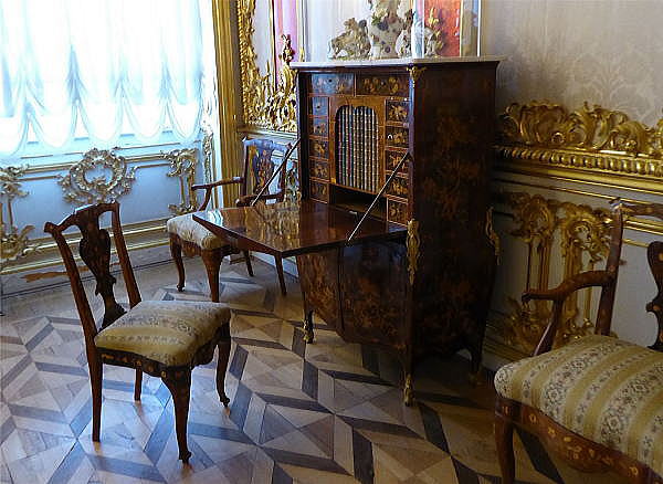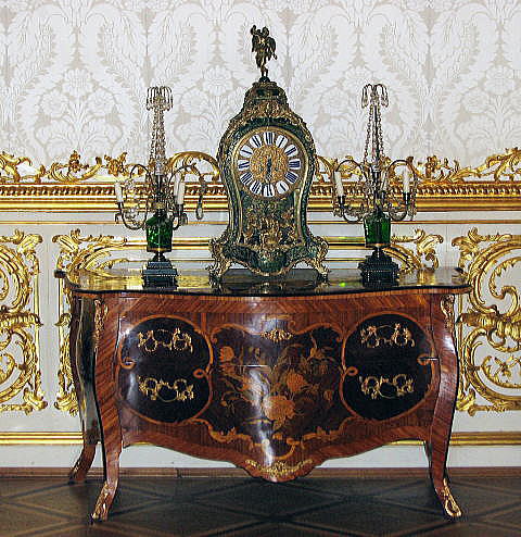| ロシア短訪・総目次に戻る ・エカテリーナ宮殿の家具・調度品 家具・調度品1 家具・調度品2 家具・調度品3 衣服 ◆サンクトペテルブルグ市 ![]() ◆エカテリーナ宮殿 家具・調度品1 ![]() ツァールスコエ・セローのエカテリーナ宮殿にある小さな白いダイニングルーム。 アームチェアーはバロック様式。 帝政ロシア、18世紀中頃。 Source:Wikimedia commons By Andrey Korzun - Own work, CC BY-SA 4.0, Link ![]() エカテリーナ宮殿の調度品 出典:池田こみち Nikon Coolpix S9900 ![]() ロシア、プーシキンのエカテリーナ宮殿、深紅の柱の部屋。 Source:Wikimedia commons By Wayne77 - Own work, CC BY-SA 4.0, Link ![]() ツァールスコエ・セローのエカテリーナ宮殿のパントリー。 寄せ木細工装飾。(フランス、18世紀中頃)の引出しはロココ様式。 Source:Wikimedia commons By Kora27 - Own work, CC BY-SA 4.0, Link ![]() 遊び部屋 Source:Wikimedia commons Massimilianogalardi - 投稿者自身による作品, CC 表示-継承 3.0, リンクによる ![]() ツァールスコエ・セローのエカテリーナ宮殿のアレキサンダーI - 皇帝の作業机。 青銅とマラカイトの筆記用具:筆記用具、インク倉庫、読書灯、キャンドルホルダー、19世紀の第1四半期の家具、備品。 Source:Wikimedia commons Andrey Korzun - 投稿者自身による作品, CC 表示-継承 4.0, リンクによる ![]() エカテリーナ宮殿の Theo Faberge製のガラスの卵 Source:Wikimedia commons By Alexxx1979 - Own work, CC BY-SA 3.0, Link つづく |
