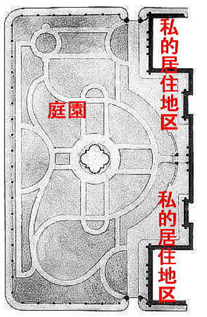 | ロシア短訪・総目次に戻る ・エルミタージュ冬宮(本館)の主要施設 ヨルダンの階段 大玉座の間 紋章の間 マーシャル将軍の間 軍事の間 大教会 アレクサンダーの間 白色の大広間 黄金の応接間 クジャク石の間 アラビアの間 ネヴァ河3広間 コラス1世円形の間 私的居住空間 庭園 コンサートホール ◆サンクトペテルブルグ(Saint Petersburg) サンクトペテルブルク歴史地区と関連建造物群 ![]() ![]() ◆冬宮殿の庭園 冬宮の庭園は、皇室の私的居住空間の西側一帯にあります。 ![]() Tsaritsa アレクサンドラワ・フェオドロワアの庭園のデザインは変更されています Source:Wikimedlia Commons Public Domain, Link ![]() 冬宮殿のコートヤード庭園のコーナー Source:Wikimedlia Commons By Satbir Singh - originally posted to Flickr as DSCF0662, CC BY 2.0, Link 以下は、夜の庭園をグーグルマップストリートビューで360度パノラマビューしています。クリック後、マウスなどで動かしてみてください。 ※ 庭園をグーグルマップストリートビューで360度パノラマビュー(夜、冬) ※ 庭園をグーグルマップストリートビューで360度パノラマビュー(昼、冬) サンクトペテルブルグ、冬宮殿の庭はあまり知られていません。それというのも、ロマノフ家の巨大な宮殿には、庭を持つという意図がありませんでした。皇帝の主要な邸宅として、首都に設置されていたこともあり、くつろいだり楽しむ場所ではなく、むしろ宮殿は権力の象徴でした。 宮殿の北側は、ネヴァ河に沿っており、宮殿広場は南側にありました。冬の宮殿には庭のためのスペースは確保されていませんでした。しかし、ロシアの最後の二人の皇后(女帝)は、それぞれ、それまで舗装されていたエリアに庭を造りました。 1885年、アレクサンダー3世の妻、皇后マリア・フョドロヴナは、以前は舗装されていた宮殿の主要な中庭に庭を造りました。この庭は、庭を取り囲む宮殿と同じように、きちんとした正方形にしていました。 芝生の庭には樹木や低木を植え、その回りは、馬車用の丸石(玉砂利)を強いた通路が囲み、宮殿広場の主要なアーチ型入口へと導き、中庭から宮殿内へと入るための様々な扉につながっていました。 第二の庭は1896年に最後の皇帝ニコラス2世の妻である皇后アレクサンドラ・ヒョードロヴナのために作られました。彼女は、20世紀になるとしばらく宮殿で暮らしました。彼女は宮殿の外装ファサードに一般の人々が入ってくるのを見つけて、宮殿の西側の私的居住棟の窓を人々が見つめて通ることを嫌いました。 彼女はまた、彼女の子供がプライバシーを確保し、隔離されて遊べる場所を望んでいたため、彼女は部屋の窓の下のパレード用の土地に庭を作りました。その庭は、上部にレールをつけた高い壁でに囲まれていました。 この庭は、リガの街の庭園と公園を監督した、景観建築家であるGeorg Kuphaldtの企画したプロジェクトに基づいて作られました。 つづく |