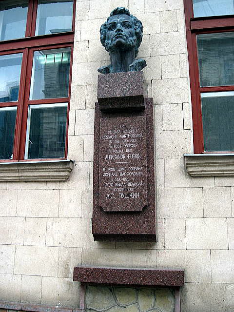 | ロシア短訪・総目次に戻る ・像 青銅の騎士像 プーシキン像 ◆サンクトペテルブルグ(Saint Petersburg) サンクトペテルブルク歴史地区と関連建造物群 ![]() ◆プーシキン像 ![]() 現在のサンクトペテルブルグ中心部 出典:ワールド航空サ^-ビス アレクサンドル・セルゲーヴィチ・プーシキン(1799年6月6日(旧暦5月26日) - 1837年2月10日(旧暦1月29日))は、ロシアの詩人・作家。ロシア近代文学の嚆矢とされれています。 ![]() プーシキン像 Source:Wikimedlia Commons ![]() プーシキン像 Source:Wikimedlia Commons 生涯 モスクワに出生。父親は由緒ある家柄のロシアの地主貴族。母親の祖父アブラム・ペトロヴィチ・ガンニバルは、ピョートル1世に寵愛された黒人奴隷上がりのエリート軍人でした。おじのワシーリイ・リヴォーヴィチは詩人であり、カラムジンやドミートリエフなどの当時の詩人らがプーシキン家に出入りしていました。 プーシキンは早くから文学に親しみ、また乳母はロシアの民話や民謡に詳しく、彼に影響を与えました。ペテルブルク郊外のツァールスコエ・セロー(現在はプーシキンと呼ばれる)にあったリツェイ(学習院)での公開試験で朗読した自作の詩『ツァールスコエ・セローの思い出』が、デルジャーヴィンに認められます。これを機に、その才能はロシアの文学界に広く知られるところとなりました。1820年、最初の長編詩『ルスラーンとリュドミーラ』を発表。 ![]() Russian poet Alexander Pushkin Source:Wikimedia Creative Commons オレスト・キプレンスキー - http://etextlib.ru/Book/Details/18469, パブリック・ドメイン, リンクによる 次第に政治色を帯びた詩を発表するようになり、文学的急進派の代弁者となって行きました。それを疎んだ政府は、1820年に彼をキシニョフへ送ります。1823年までキシニョフに留まりました。その間、夏にカフカース(コーカサス)とクリミアに旅して長編詩『コーカサスの虜(ロシア語版)』や『バフチサライの泉』を書き、高い評価を得た。1823年にはオデッサに移り住むが、再び政府と衝突し、1824年に両親の住む北ロシア、プスコフ県ミハイロフスコエ村に送られます。 この時期にシェークスピアを愛読し、『ボリス・ゴドゥノフ(英語版)』などの戯曲を書いています。1826年、皇帝ニコライ1世への嘆願が認められてペテルブルクに戻ります。しかし、1825年に起こったデカブリストの蜂起の後の締め付けのために、デカブリスト(十二月党員)に友人をもつプーシキンは、北ロシアにいた時期に書いた『ボリス・ゴドゥノフ』などの詩を発表することが許されず、政府の監視のもと、窮屈な生活を余儀なくされます。 ![]() Pushkin memorial board at Iordake Varfolomey's house Source:Wikimedia Creative Commons By Alexander Murvanidze, CC BY-SA 3.0, Link ニコライの創設した秘密警察である皇帝官房第三課は、長官アレクサンドル・ベンケンドルフ伯爵のもとでプーシキンへの監視を行いました。結婚の前年の1830年には、ボルジノにてロシア初の短篇小説集『ベールキン物語』、叙事詩『コロムナの家』、『ヌーリン伯爵』、韻文小説『エヴゲーニイ・オネーギン』を完成します。 1831年、ナターリア・ゴンチャロワと結婚。プーシキンとナターリアの間には、1832年に小説『アンナ・カレーニナ』のモデルとして知られる長女マリア、1833年に長男アレクサンドル、1835年に次男グリゴリー、1836年に次女ナターリア(孫はゾフィー・フォン・メーレンベルク)の、計2男2女が生まれました。 1833年、オラルとオレンブルクを訪問。 1836年、雑誌『同時代人』を創刊。ニコライ1世の強権的な専制政治の圧政下、検閲や発禁処分など言論への弾圧に反発しました。同年11月、『大尉の娘』を第4号に発表。その後、低位の階級を与えられ帝室への出入りを許されるが、この申し出を、名うての美人で、密かに慕う者が多かったと言われる妻ナターリアを帝室に出入りさせるためのものとして、屈辱と受け取りました。 プーシキンの進歩思想を嫌った宮廷貴族達は、フランス人のジョルジュ・ダンテスをたきつけ、ナターリアに言い寄らせます。やがて、プーシキンは妻に執拗に言い寄るダンテスに決闘を挑み、1837年1月27日、ペテルブルグ北郊のチョールナヤ・レチカで決闘を行いまし。この決闘で受けた傷がもとで、その2日後に息を引き取りました。政治的な騒動を恐れた政府は、親しい者だけを集めて密かに葬儀を執り行いました。遺体はミハイロフスコエ付近のウスペンスキー大聖堂の墓地に埋葬されました。 つづく (エカテリーナ宮殿へ) 総目次に戻る |