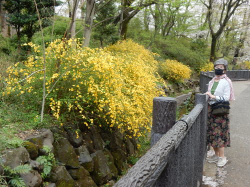 その1 その2 その3 2020年の春はCOVID-19問題で毎年出かけている東京都大田区にある池上本門寺と洗足池のサクラ見物はお休みしました。 2021年は、緊急事態宣言明けであっても、コロナ禍が心配されたが、空いている3月末の月曜日の午前に、池上本門寺(3月22日)と洗足池(3月29日にでかけました。 池上本門寺、洗足池ともに東京の城南、東京都大田区にあります。東急池上線の電車で池上、洗足池が便利です。 洗足池には2021年3月29日(月)にでかけました。大岡山にある研究所の駐車場に車を停め、歩いて、まず大岡山駅まで行き、サイゼリアで昼食をとり、洗足駅まで歩きました。大岡山駅から洗足駅は散歩に丁度良い距離です。往復で約8000歩となりました。 以下はサイゼリア大岡山店から洗足池までの徒歩の道のりです。徒歩で10分です。 ![]() 出典:グーグルマップ 洗足池はこの2年間、池周辺で大幅にエコアップ、ビオトープが進んでいました! 下はその一部です。黄色い花は一重のヤマブキです。 ![]() 撮影:青山貞一 Nikon Coolpix S9900 2021-3-29 山吹二は、黄色の一重と八重、白の一重の三種類の花があります。洗足池の山吹はほぼ全部が一重の黄色でした。池田宅には白の一重があり、可憐な花のあとには黒い実が付くのですが、黄色いヤマブキには実が付きません。 そのことを踏まえて、 「七重八重花は咲けどもやまぶきの実のひとつだになきぞ悲しき」 という歌があります。逸話というのは、若き日の太田道灌が鷹狩りに出かけたところ急に雨が降り出して、通りすがりの農家にたちより、「蓑」を借りようとしたところ、その家の少女がこの歌を詠んで山吹の一枝を渡したというのです。道灌は蓑を借りられずに憤慨して帰るのですが、後に、この歌には、お貸しする「蓑がない」ことと「実のひとつだにない山吹の花」をかけて少女が申し訳なく思って枝を手渡したことを知り、あとで太田道灌は恐れ入ったというお話しです。 今でも、東京の都電の終点早稲田の手前、神田川にそったところに「面影橋」という駅がありますが、神田川をわたったところの高田氷川神社に、「山吹の里」の石碑があります。 ヤマブキと歩道の間にせせらぎが出来ていました。せせらぎの縁には石垣があり、隙間からトカゲがチョロチョロ顔を出して動き回るので、子供たちが大はしゃぎでした。 ![]() 撮影:青山貞一 Nikon Coolpix S9900 2021-3-29 下の写真はソメイヨシノ、ヤマブキの競演です。水路では、蛍の幼虫を飼育しています。近所の小学校の子供たちと一緒に6月には幼虫を池に放す行事が行われていると聞きました。身近な自然に触れるよい機会となっています。 ![]() 撮影:青山貞一 Nikon Coolpix S9900 2021-3-29 以下は遊歩道から洗足池を写した写真です。天気がいまいちで、空が鉛色のため、ソメイヨシノが目立ちませんが、この辺りはかなり整備されています。 ![]() 撮影:青山貞一 Nikon Coolpix S9900 2021-3-29