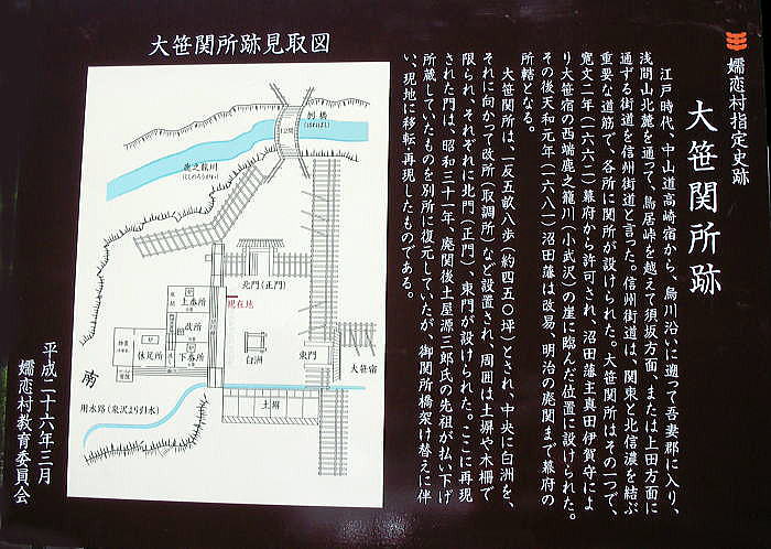 2015年9月20日午前9時過ぎ、私達は北軽井沢の保養所から長野県真田町にある角間渓谷に向かいました。 下はグーグルマップの経路分析で見たルートと時間です。大笹で国道144号線に出た後、群馬と長野の境界にある鳥居峠を通ったさらに直進した後、南に左折します。所要時間は40分ほどでした。 ![]() 北軽井沢から角間渓谷へのルート 出典:グーグルマップ 信州から上州に入るルートは、北から南までいくつかあります。 北から紹介すると、まず信州の高山村、上州の万座、白根、草津を経由し、信州街道に降りるルートがあります。次は今回使用した信州の旧真田町から鳥居峠を通り上州に入るルートです。 その南には、1500m〜1800mの山を越える「湯の丸峠」を通り上州の鹿沢に出るルート、その南には信州の北相木村から「十石峠」を通り上州の南牧村を問うる武相街道ルート、さらに信州の川上村から「三国峠」を通り埼玉県の秩父に向かうルートがあります。 下図はそれらを示しています。以下の5つの峠以外に、実は群馬県の上野村から長野県南相木村に通ずるぶどう峠がありますが、一年のうち大部分は閉鎖されています。 以下は長野県(信州)から群馬県(上州)、埼玉県(秩父)に抜ける峠を示しています。今回はこのうち、鳥居峠を通過しています。 ![]() 出典:グーグルマップ 上記4つのルートはいずれも現存し、私たちはそれらすべてのルートをすでに車で走破しています。 今回、私達が別荘から旧真田町にある角間渓谷に行くには、そのうち国道144号線を使います。このルートは、群馬県嬬恋村を走る国道144号線で、途中「大笹の関」があります。そして江戸時代、鳥居峠を通るこのルートは「信州街道」と呼ばれています。 下の写真がその「大笹の関」です。別荘からここまでは約15分でこれます。 ![]() 撮影:青山貞一 Nikon Coolpix S8 2015-5-GW ![]() 撮影:青山貞一 Nikon Coolpix S8 2015-5-GW 大笹の関は、江戸時代の1662年、江戸幕府から許可され、沼田藩主、沼田伊賀守により大笹宿の西端鹿之籠沢(小武沢)の崖に臨んだ位置に設けられたとあります。その後、天和元年(1688年)沼田藩は改易、明治の廃関まで幕府の所轄となっていました。 ![]() 撮影:青山貞一 Nikon Coolpix S8 2015-5-GW なお、大笹関所は、一反五畝八歩(約450坪)とされ、中央に白洲を、それに向かって改所(取調所)などが設置され、周囲は土塀や木柵で限られ、それぞれに北門(正門)、東門が設けられました。 ここに再現された門は、昭和31年、廃関後、土屋現減三郎の先祖が払い下げ所属していたものを別所に復元していましたが、五隻所橋架け替えに伴い。現地に移転、再現したものです。 ![]() 撮影:青山貞一 Nikon Coolpix S8 2015-5-GW つづく |