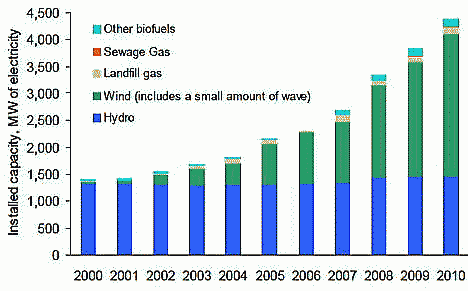 スコットランドが独立するとなると国家として重要な課題になる外交、防衛、エネルギー、金融・財政、通貨、通信などのうち、ここではスコットランドのエネルギー戦略について見てみよう! 今回のスコットランド現地調査のひとつの大きな目的は、福島第一原発事故以降、日本で脱原発やゼロ原発が大きな課題となったいることとあわせ、スコットランドのエネルギー事情を現場でしっかりと見届けることにあった。 これはスコットランド独立と関連づけて見るとさらに興味深いが、純粋に科学技術、経済論としても興味深いものがある。 言うまでもなく脱原発を当面、可能にするのは、石油、石炭、天然ガスなどの化石燃料だが、当然のこととして化石燃料に大きく依存していては、大気汚染はもとより膨大な量の二酸化炭素(CO2)が環境中に排出されることになる。 ![]() スコットランドの地理的位置(赤色部分) あれほど世界中、そして日本においても環境政策の中心的課題となっていた地球規模の温暖化問題がちまたで論じられなくなったのは、どうみてもおかしい。 もちろん、ついこの間まで環境省が率先して、地球温暖化防止のために原発を推進するという無責任な政策、その環境省にこともあろうか500人規模の原子力規制委員会が設置される大愚もある。 化石燃料は大気汚染、二酸化炭素排出問題以外に、いうまでもなく燃料価格問題があり、今後ピークオイルを迎える石油、天然ガスを使い続けることは難しくなる。 となれば、いわゆる再生可能エネルギーの開発利用を日本でも加速しなければならない。しかし、過去、政官業学報、すなわち政府、自民党、民主党などの政党、原子力産業企業、大学・研究機関、報道機関が一体となり、有無を言わさない形で原発を推進してきたために、日本の再生可能エネルギーの開発利用は遅々として進んでこなかった。 技術面で日本が著しく欧米、とくにドイツ、デンマークなどに遅れているとは思えないが、何しろ日本では国家予算の圧倒的多くが永年原発を推進するために投入されてきた経緯がある。 問題は技術以外に、電気事業法に基づく安定供給問題、電力会社問題、依然として実質地域独占となっている電力会社経営、発送電分離問題、都道府県、自治体など公共セクターでの利用面、市民、家庭レベルでの需要などが重なり、福島原発事故以前にあっては、欧米の先進地域に比べ一桁低い状況にあった。 ●スコットランドの再生可能エネルギー、現在31%、2020年に100% ところで、この分野で世界的に有名なのは、ドイツ、デンマークなどEU諸国、それに米国カリフォルニア州などだが、私達は日本でほとんど話題にすらなっていない英国、とりわけスコットランドに注目した。 英国の人口の12分の1、面積でも3分の1に過ぎないスコットランド、いわゆる産業革命を科学技術面から牽引したスコットランドが、エネルギーという難題にどう立ち向かっているのか、すごく興味があった。 しかも、スコットランド同様、北アイルランド、イングランドに永年蹂躙され、英国に併合されているウェールズだが、そのウェールズは、今から30年も前に、自然エネルギーを中心に、再生可能エネルギーで地域全体のエネルギーをまかなう代替技術センター(Center for Alternative Technology)を開発している。 すでに述べたように、独自性を主張して止まない、スコットランドが、このエネルギー問題にどう立ち向かうのか、さらに300年来の国民的課題である英国からの独立との関連において、エネルギー問題をどう戦略的に考えているのか、についても大いに関心があるところであった。 スコットランドは現在、電気エネルギーの31%を風力など自然エネルギーを中心とした再生可能エネルギーでまかなっているが、何と2020年までに、それを100%にするという意欲的な目標と戦略を持っている。 これについては、詳細を以下の論考に書いたので、ぜひ一読して欲しい。 以下は、スコットランドの2020年までに再生可能エネルギーを100%にするという意欲的な目標と戦略の内容である。風力発電(地上、洋上)がメインであるが、複雑な北部沿岸の地形を最大限活用した波力、潮流発電、それに現在でも多くの実績がある水力発電などが100%を支えることなる。 ◆青山貞一・池田こみち:スコットランドのエネルギー開発戦略 http://eritokyo.jp/independent/aoyama-scot009..html 現地調査では、欧州で2番目の規模を誇り、スコットランドでは人口規模で第一の都市であるグラスゴーの南に立地されたホワイトリー風力発電ファームを訪問した。このファームだけでグラスゴー市民全体の電気エネルギーの供給を目指しており、現在18万世帯に供給されているが、近い将来さらに風力発電を増設を予定している。 ![]() スコットランドの過去10年の再生可能エネルギーの電力設備容量(MWh) 出典:スコットランド政府> ![]() 2020年までの将来シナリオ 出典:スコットランド政府 ◆青山貞一・池田こみち:スコットランドの更新可