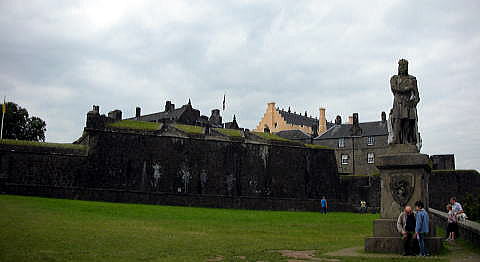 | 上の地図は2200kmに及ぶ走行ルートと主な調査、視察点である リンリスゴー城(宮殿)で生まれたメアリーだが、メアリー・スチュアートはイングランドの追っ手から逃げるため、生後わずか6日目に母親マリ・ド・ギーズの計らいで、リンリスゴーから西北30kmにある岩山の上にあるスターリング(Stirling Castle)城に移される。 ![]() リンリスゴーからスターリングへ Source:Google Map そして翌1543年9月9日、メアリーは盛大な戴冠式を行いスコットランドの女王となった。 スターリングのまちも、リンリスゴー同様、中世の面影を色濃く残した静かなまちだ。と同時に、城の立地と形がエジンバラ城に似ていることからミニチュア版のエジンバラとも言われている。 下の写真はスターリング城の遠景である。この城は、エジンバラ同様、外敵(イングランド)からスコットランドを守るための要塞としての機能を重視されつくられている。 スターリング城を示すユニコーンのアイコン![]() メアリーはリンリスゴー城からスターリング城に移された どことなくエジンバラ城に似ている Source: English Wikipedia ![]() 1900年のスターリング城 Source: English Wikipedia ![]() Stirling Castle, drawn by John Slezer in 1693, and showing James IV's now-demolished Forework Source English Wikipedia さらに、このスターリングのまちは、かつてスコットランドの首都でもあった。というのも、このスターリングは、スコットランドが永年の宿敵イングランドと正面から激突しスコットランドが勝利した地であるからだ。 13世紀にウィリアム・ウォレス率いるスコットランドの民衆軍が重装備のイングランド正規軍を打ち破った「スターリングブリッジの戦い」があった地である。その後、ウォレスはイングランドに捕らえられ、市中引き回しの上、八つ裂きの刑に処せられた。 しかし、スコットランド国王のロバート・ザ・ブルースは14世紀に入ってからスターリングのすぐ南にあるバノックバーンの地でイングランドと戦い完全勝利した。 これら13〜14世紀の二つの勝利によって、スコットランドはイングランドから独立を勝ち取っている。 ![]() ウイリアム・ウォレス率いる民衆軍が重装備のイングランド正規軍を 破ったスターリングの戦い。ただしこの写真は映画(Brave Heart)の一幕 Source:Movie, Brave Heart 下の写真はイングランドの猛攻を最初に破りスコットランドの独立の父とされているウイリアム・ウォレスを記念して築造された国立ウォレス記念塔である。 ![]() イングランドの猛攻を最初に破りスコットランドの独立の父と されているウイリアム・ウォレスを記念して築造された 国立ウォレス記念塔。宿泊先のスターリング大学から撮影 撮影:青山貞一 Nikon CoolPix S8 スターリングでは、国立ウォレス記念塔近くにあるスターリング大学のゲストハウスに宿をとった。この大学や大学院には日本の学生や研究員らが多数在籍していると聞いた。 ![]() 宿泊先のスターリング大学のゲストハウス 後ろに国立ウォレス記念塔がそびえている 撮影:青山貞一 Nikon CoolPix S8