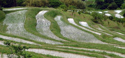 ![]() 左から池田さん(環境総研)、菖蒲さん、青山、横石さん、菖蒲さんの旦那様 徳島県上勝町にて そこには新たな起業による雇用機会がたくさんあるはずです。 カナダのノバスコシア州では、脱焼却、脱埋めてゼロウエイスト政策により、多くの雇用機会が生まれています。 ![]() 設楽町には、そこかしこに新たな働く場があるはずです。すでに提案したもの以外に、「棚田」を生かし、都会の人々と連携し、Uターン、Jターン、Iターンしてきた若者が中心となり農作物をつくり出荷するとか、今までほとんどほったらかしとなっていた休耕田などの農地を生かし、有機農業を進め小中学校の給食の食材とすると言ったことも十分可能です。 事実、「棚田」を若者が管理し、都会の人々と連携し農作物を提供する方法は、加藤登紀子さんが千葉県の鴨川で実践しています。Uターン、Jターン、Iターンしてきた若者が棚田を管理し、農作物をつくっています。 都会の人たちが野菜作りやお米作りに参加したり、自然に触れることを通じて癒されたり、活力を取り戻す場となることでしょう。 ![]() 加藤登紀子さんらの鴨川の棚田 その加藤登紀子さんと私の出会いは、この2003年4月下旬、木更津で開催されたゴミ弁連木更津総会です。 カナダ・ノバスコシア州で行われている市民参加による脱焼却、脱埋立のまちづくりを加藤さんが聞かれ、一度「未来たち学校」で話をして欲しいと言われました。 その後、6月になって、加藤さんと故藤本敏夫さんがつくられた「自然王国」に一泊させて頂き、循環と共生のまちづくりの実験場を体感させていただくことになりました。すばらしいゲストハウスであり、自然王国です。 このときは同時に、鴨川市のゴミ行政の現場をつぶさに視察しました。市長らにもお会いし、市役所の会議室で行政、議会、NPOの皆さんに、私の政策提言を行いました。