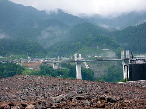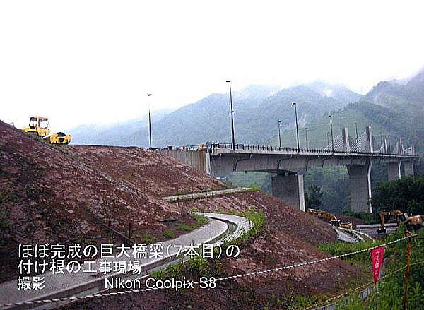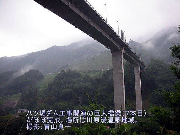 ![]() 撮影:青山貞一 Nikon Coolpix S8 以下はほぼ完成した7本目の巨大橋梁である。 今回、2014年7月17日午後に現地で撮影したものである。 ![]() 撮影:青山貞一 Nikon Coolpix S8 2014-7-17 上の写真にある湖面1号線の橋梁は、八ッ場ダム工事における巨大橋梁建設の何と7本目の橋梁であるが、正式には、一般県道川原畑大戸線 湖面1号橋という。巨大橋梁以外の中小規模の橋梁建設は数知れないが、巨大橋梁だけで先の立体図に見るように7本もある。 湖面1号線橋梁の建設場所は、長野原町川原湯温泉地域と対岸の川原畑地域を結ぶ位置にある。下の看板は国土交通省が昨年まで現地に設置していた一般県道川原畑大戸線 湖面1号橋の解説板である。橋の延長は494m地表面からの高さは最大で81mとなっており、巨大な橋梁であることが分かる。 ![]() 撮影:青山貞一 Nikon CoolPix S8 2013-8 この湖面1号線は、民主党が政権を取った2009年秋、メディアが撮影し報道していた橋(湖面2号線という)の下流側にあり、今後本格工事に入る八ッ場ダム本体から少しだけ上流側となる。 下の写真は2013年の8月に、川原畑側の現地で撮影した一般県道川原畑大戸線 湖面1号橋である。 ![]() 一般県道用道路の橋梁となる湖面1号線(Eに相当)の工事現場 撮影:青山貞一 Nikon CoolPix S8 2013-8 下の写真は川原湯温泉側から撮影した一般県道川原畑大戸線 湖面1号橋である。工事は橋桁部だけでなく橋梁上の道路部分もかなり完成していることが分かる。後述する湖面2号橋に比べると、工事の進捗が非常に早くなっている。 ![]() 撮影:青山貞一 Nikon Coolpix S8 2014-7-17 斎藤さんが立っているのは、川原湯温泉地域の温泉や住民の代替地(移転地)の外れであり、背後に一般県道川原畑大戸線 湖面1号橋が見えている。 ![]() 斎藤さんが立っているのは、川原湯温泉地域の温泉や住民の代替地 撮影:青山貞一 Nikon Coolpix S8 2014-7-17 下の写真は、一般県道川原畑大戸線 湖面1号橋の渓谷を挟んで反対側の川原畑地区で撮影したものである。湖面1号橋と一般県道、国道145号線バイパスなどを接合させる部分の工事の様子が分かる。 ![]() 撮影:青山貞一 Nikon Coolpix S8 2014-7-17 上の写真を見ると、一帯にブルドーザーが入り、自然環境だけでなく地質・土質もメチャクチャに破壊され裸地となっている。 法面は法面で、今後、コンクリートを貼り付ける一大土木工事が行われることとなるのは目に見えている。その場合でもこうした斜面の開発工事により、地域全体の流出係数が高まり、1時間当たり数10mmさらに50mmを超すような大降雨時に土砂崩れ、がけ崩れも起きやすくなっているはずだ。近年、気候変動の影響か、1時間当たり50mmを超すような大雨が全国各地で降っており、死者を出すような崖崩れが頻発している。 この地域一体は天明3年の浅間山大噴火時の火山灰が堆積しており、地質、土質学的に見ても脆弱となっていると地質学の専門家が指摘して久しい。 つづく |