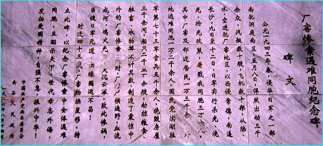 ![]() 日本軍により廠窖事件で亡くなった同胞3万人 出典:百度百科 総合メニュー へ 注)原題の「廠窖事件」の「廠」は工場を、「窖」は地下室を意味している。 廠窖虐殺事件の概要 中国を侵略した日本軍が1943年5月9~11日に湖南省南県廠窖で起こした虐殺事件。中国側の調査によると、南北10キロ、東西5キロの50平方キロの範囲を中心に3万人以上が死亡。当時、日本軍は長江(揚子江)の水運を確保するための江南せん滅作戦を展開。湖北省南部から湖南省北部の国民党軍をせん滅する過程で、民間人も無差別に虐殺したとみられている。 本文 廠窖事件の悲劇とは、第二次世界大戦中、湖南省南県の工場蔵の町で日本軍が民間人を虐殺した悲劇のことを意味する。 1943年5月9日から12日にかけて3日間、日本軍はこの町で罪のない人々を大量に虐殺し、中国侵略に次ぐ大きな悲劇を生み出した。たった3日間で3万人以上の同胞が殺され、1日に1万人以上が殺され、第二次世界大戦中のファシストによる1日の殺害数の最高記録となった。 ![]() 廠窖事件の場所 出典:グーグルマップ 愛国心を促進し、宜陽南県の工場地下室の悲劇の影響力を高め、教育機能を警告し、工場地下室の悲劇記念館の完成とオープンに結びつけるために、湖南小向映画集団公司、中共南県委員会、県人民政府は共同で映画「工場地下室の悲劇」を制作し、2009年11月3日午前、南県芳果橋横の葦原で盛大な開会式を開催した。 廠窖事件の悲劇」は、1943年5月9日から12日にかけて、湖南省南県の工場町で起きた、侵略してきた日本軍が原因の事件である。 ![]() 廠窖事件悲劇祈念館 出典:百度百科 湖南省南県にある廠窖事件があった工場蔵の町は、洞庭湖の北西岸に位置し、三方が水に面し、半島のような形をしている。 洞庭湖西北部の水路の要所であり、兵士たちの必見の場所となっている。 1943年、日本軍は宜昌から武漢までの長江ルートを開通させ、中国の穀倉地帯を奪い、中国政府を降伏させるために、5月5日から6月10日まで「江南殲滅戦」を展開した。 江南殲滅戦は、国民党の第73軍と第44軍を殲滅することを主眼に、3つのフェーズに分けて行われた。 ![]() 工場の地下室の悲劇で亡くなった同胞のための慰霊碑 出典:百度百科 ![]() 地下室の悲劇の犠牲者のための記念碑の全景写真 出典:REDNT.NET 百度百科 日本軍が「江南殲滅戦」を開始した後、湖の北側からいくつかの部隊に分かれて湖南に侵攻し、蓮根池周辺、獅子頭、華龍、岳陽などから陸路と水路で安祥、南仙に至るまで、日本軍は湖南を侵略したのである。 これに空からの砲撃が加わり、最終的には工場の地下室で閉鎖循環空間(クローズド・サークル)を形成していた。 その頃、華融、南鮮、安祥に駐留していた国民党第73軍の主力部隊(1万人以上)は、日本軍の包囲網から逃れるために、退却して昌徳を渡る準備をするよう命じられていた。 また、この半島には、一部の公務員や学校の教師、学生を含む湘江省からの避難民と、2万人以上の地元住民が住んでおり、合計で5万人以上の兵士と民間人が方丈庵に集まっていた。 そうこうしているうちに、軍と民の区別がつかなくなり、難民が潮のように押し寄せ、鶏は飛び、犬は慌てふためき、混沌とした状態になってしまった。 5月9日から12日までの3日間、日本軍は中国の兵士や民間人を3万人以上殺し、3,000人以上を負傷させ、2,000人以上の女性を強姦し、3,000棟以上の家屋を焼き、2,500隻以上の船を沈めて燃やし、中国と海外に衝撃を与えたのである。 近年、町の党委員会と町政府は、工場の地下室の悲劇の犠牲者のために記念碑と記念館を建て、「工場の地下室の悲劇の血塗られた歴史」を組織して印刷し、風車の角や永谷村などの5000個の穴を発掘し、テレビ映画「工場の地下室の悲劇の追跡」と「工場の地下室の今日」を撮影した。 また、町の党委員会と町政府は、5月8日を町全体の愛国教育の日とすることを決定した。 ![]() 祈念館の平面図 出典:百度百科 工場の地下室の悲劇で亡くなった同胞のためのモニュメントは、高さ19.43メートル、台座の高さは5.9メートル。 碑の高さと台座は、同胞に、日本の盗賊が工場の地下室で凶悪な犯罪を犯した日(1943年5月9日)を常に思い起こさせる。 工場の地下室の悲劇で亡くなった同胞のための記念館は、記念碑の隣に建てられ、赤い壁と緑のタイルでできた2階建ての建物となっている。 記念館には、日本の侵略者が同胞を虐殺した際に使用した刀、銃剣、銃、爆弾、殺害された同胞の骨、虐殺に関する新聞記事などが展示されている。 アイテムや写真の一つ一つが、悲惨な大虐殺を再現している。 1943年5月9日の早朝、数百人の日本兵が永国館を急襲し、同胞を各地の野原に縛り付け、東洋の刀で切り刻み、銃口を突きつけた。 日本軍が撤退した後、生存者は穴を掘って1,000人以上の死者を埋葬した。 現在、この一帯は「千人穴」と呼ばれている。 16人の日本人長老が南鮮に行き、工場の地下室の悲劇を証言し、日本に持ち