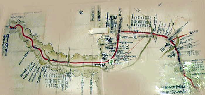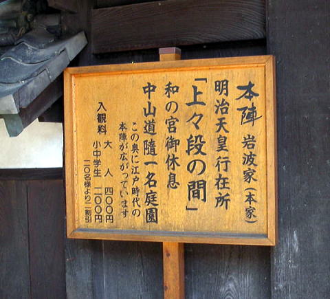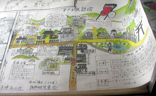 ◆本陣(岩波家) 下諏訪宿の本陣と問屋は、現在、岩波家が管理する部分と、江戸時代から「かめや」という屋号をもつ温泉旅館のふたつに別れています。 もともと一緒だった下諏訪宿の本陣は問屋も兼ねていました。そして1861年11月には徳川家茂将軍家に下降し嫁ぐ皇女和宮さま本陣にお泊まりになっています。また明治13年6月24日、明治天皇のご巡幸の際には、本陣でご休憩をおとりになっています。 ![]() 史蹟 本陣遺構 撮影:青山貞一 Nikon Coolpix S8 2015-8-16 下は岩波家が管理している本陣です。門から入り庭をかなり進むと本陣だった屋敷の一部を見ることが出来ます。 ![]() 西諏訪宿本陣の門 撮影:青山貞一 Nikon Coolpix S8 2015-8-16 ![]() 下諏訪宿本陣の門の前の池田こみち 撮影:青山貞一 Nikon Coolpix S8 2015-8-1616 本陣岩波家の入館料は大人一人当たり400円です。 ![]() 本陣岩波家の入館料は大人一人当たり400円 撮影:青山貞一 Nikon Coolpix S8 2015-8-16 下の左の玄関を入ったところが受付です。 ![]() 左の玄関を入ったところが受付 撮影:青山貞一 Nikon Coolpix S8 2015-8-16 下は入口に置いてあった往事の泊客を示す看板の数々です。 ![]() 往事の泊客を示す看板の数々 撮影:青山貞一 Nikon Coolpix S8 2015-8-16 下の写真の左奥にいる女性が岩波家の血筋をひく方で、30分ほどいろいろ議論しました。岩波は岩波書店で有名な岩波一族です。 ![]() 受付で左奥にいる女性が岩波家の血筋をひく方です 撮影:青山貞一 Nikon Coolpix S8 2015-8-16 ![]() 受付で奥にいる女性が岩波家の血筋をひく方です 撮影:池田こみち Nikon Coolpix S6400 2015-8-16 さすが下諏訪宿の本陣兼問屋だけあって、すばらしい日本庭園です。 ![]() 下諏訪宿の本陣兼問屋だけあって、すばらしい日本庭園です。 撮影:池田こみち Nikon Coolpix S6400 2015-8-16 下はおそらく明治時代に入ってからの下諏訪宿でしょう。下の写真は下諏訪町のあちこちで宿場のイメージとして使われていました。 ![]() おそらく明治時代に入ってからの下諏訪宿 撮影:池田こみち Nikon Coolpix S6400 2015-8-16 たとえば、下は下諏訪町立歴史民俗資料館の資料の表紙です。 ![]() 撮影:青山貞一 Nikon Coolpix S8 2015-8-16 下は江戸時代の下諏訪宿本陣兼問屋の平面図です。以下に広大であったか分かります。 ![]() 江戸時代の下諏訪宿本陣兼問屋の平面図 撮影:池田こみち Nikon Coolpix S6400 2015-8-16 以下は下諏訪宿の本陣(兼問屋)の岩波家の座敷、庭と展示物です。 ![]() 下諏訪本陣の座敷の床の間 撮影:青山貞一 Nikon Coolpix S8 2015-8-1616 ![]() 下諏訪本陣の座敷にて 撮影:池田こみち Nikon Coolpix S6400 2015-8-16 ![]() 下諏訪本陣の座敷、廊下と庭 灯籠があります 撮影:青山貞一 Nikon Coolpix S8 2015-8-16 下諏訪本陣の庭です。 ![]() 下諏訪本陣の庭 撮影:青山貞一 Nikon Coolpix S8 2015-8-16 皇女和宮御降嫁時に下諏訪宿本陣に宿泊したときに使われた什器などのお道具です。 ![]() 皇女和宮御降嫁時に下諏訪宿本陣に宿泊したときに使われた什器などのお道具 撮影:青山貞一 Nikon Coolpix S8 2015-8-16 ![]() 皇女和宮御降嫁時に下諏訪宿本陣に宿泊したときに使われた什器などのお道具 撮影:青山貞一 Nikon Coolpix S8 2015-8-1616 ![]() 撮影:池田こみち Nikon Coolpix S6400 2015-8-16 ![]() 撮影:池田こみち Nikon Coolpix S6400 2015-8-16 本陣(岩波家)には、多くの貴重な地図や絵図がありました。 下はかなり広域の下諏訪宿とその周辺の街道地図です。 ![]() かなり広域の下諏訪宿とその周辺の街道地図 撮影:青山貞一 Nikon Coolpix S8 2015-8-16 下はおそらく江戸時代の下諏訪宿の宿場街道図です。中山道に甲州街道がつながる部分の北側に本陣があることが分かります。これは現在でも同じです。オリジナルで字が読めるなら、読めるうちにデジタルアーカイブ化などをしておくとよいと思います。 ![]() おそらく江戸時代の下諏訪宿の宿場街道図 撮影:青山貞一 Nikon Coolpix S8 2015-8-16 下は本陣を中心に書かかれた下諏訪宿です。真ん中に本陣(岩波家)、上に「かめや」、右端に諏訪大社下社秋宮の鳥居があります。この地図は比較的新しいものです。 ![]() 本陣を中心に書かかれた下諏訪宿 撮影:青山貞一 Nikon Coolpix S8 2015-8-16 下は諏訪大社下社絵図です。左側に春宮、右側に秋社があります。下諏訪の宿場町は両社の間に出来たことになります。 ![]() 下諏訪宿本陣岩波家所蔵の諏訪神社下社絵図 撮影:青山貞一 Nikon Coolpix S8 2015-8-16 下はグーグルアースで見た諏訪大社下社の春宮と秋宮です。上の絵地図と比べるといかに市街地化が進んだかが分かります ![]() グーグルアースで見た諏訪大社下社の春宮と秋宮 一方、下は江戸時代の下ノ諏訪の絵図です。ほぼ上の絵図に類することが分かります。 ![]() 江戸時代の下ノ諏訪の絵図 撮影:池田こみち Nikon Coolpix S6400 2015-8-16 ![]() ![]() 撮影:池田こみち Nikon Coolpix S6400 2015-8-16 下はいわゆる「合せ印鑑」です。 ![]() 撮影:池田こみち Nikon Coolpix S6400 2015-8-16 下は庭の奥にあった蔵(倉庫)?です。さそかし、貴重な文物が保管されているのでしょう。 ![]() 庭の奥にあった蔵(倉庫)?です。 撮影:池田こみち Nikon Coolpix S6400 