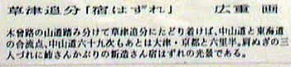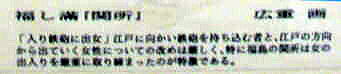 ◆下諏訪町立歴史民俗資料館 ![]() 撮影:池田こみち Nikon Coolpix S6400 2015-8-16 ◆江戸時代の浮世絵師による中山道69次画 下は安藤広重による中山道六九次の図です。 ![]() 下諏訪宿 安藤広重 撮影:池田こみち Nikon Coolpix S6400 2015-8-16 ![]() ![]() 木曽路 坂本 安藤広重画 撮影:青山貞一 Nikon Coolpix S8 2015-8-16 下は下諏訪から見た和田峠のはずです。遠くに富士山らしき山が見えます。 ![]() 撮影:青山貞一 Nikon Coolpix S8 2015-8-16 ![]() 木曾街道塩尻 諏訪湖 ![]() 木曽海道塩尻・諏訪湖を対象とした浮世絵 出典:Wikipedia ![]() ![]() 木曾街道69次 草津追分「宿はずれ」 広重画 撮影:青山貞一 Nikon Coolpix S8 2015-8-16 ![]() ![]() 木曾街道69次 福し溝「関所」 広重画 撮影:青山貞一 Nikon Coolpix S8 2015-8-16 ![]() ![]() 木曾街道69次御嶽 きちん宿 広重画 撮影:青山貞一 Nikon Coolpix S8 2015-8-16 ![]() ![]() 木曾街道 柏原 薬問屋亀谷の店先 安藤広重 撮影:青山貞一 Nikon Coolpix S8 2015-8-16 ![]() 木曾街道六拾九次 和田(歌川広重画) 撮影:池田こみち Nikon Coolpix S6400 2015-8-16 以下二枚は同じものですが、デジタル処理技術により色の再現性が異なっています。 ![]() 諏訪温泉の絵図 撮影:池田こみち Nikon Coolpix S6400 2015-8-16 ![]() 諏訪温泉の絵図 撮影:池田こみち Nikon Coolpix S6400 2015-8-16 つづく |