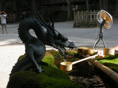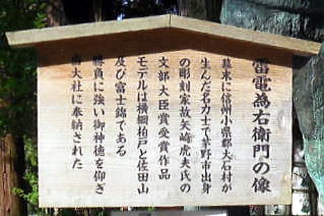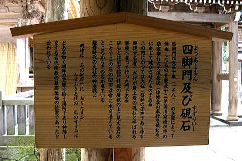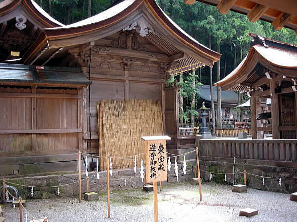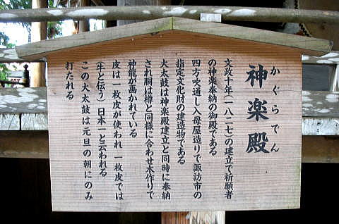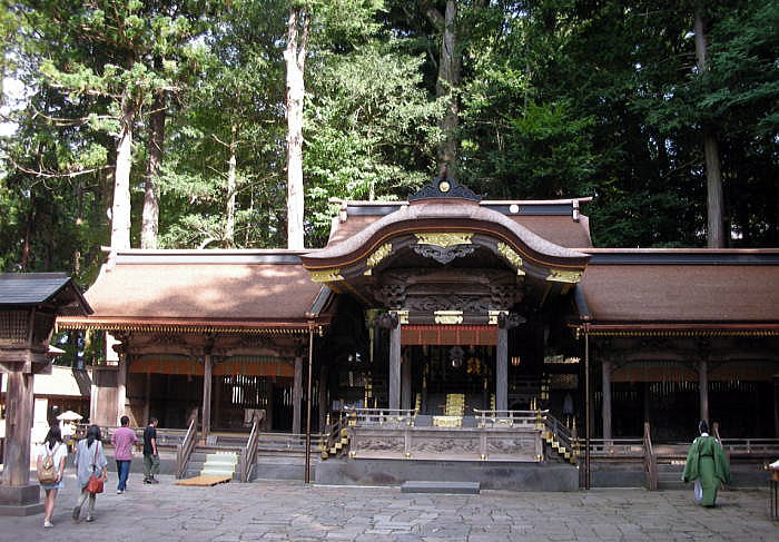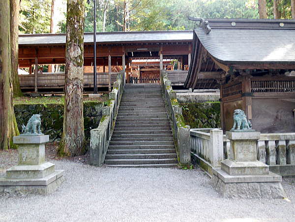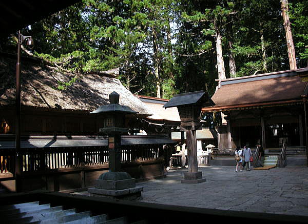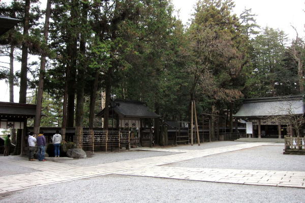 下は諏訪大社上社本宮主要部のクローズアップです。 ![]() 撮影:青山貞一 Nikon Coolpix S8 2015-8-16 五間廊を渡っていると、左側に大国主社(摂社)もありました。さすが諏訪大社、全国の著名な摂社があります。 大国主社(摂社) ![]() 大国主社(摂社) 撮影:青山貞一 Nikon Coolpix S8 2015-8-16 ![]() 撮影:青山貞一 Nikon Coolpix S8 2015-8-16 大国主社(摂社) 諏訪大神の御父神でる大国主命を祀る社で古事記に寄れば諏訪大神「建御名方神」は大国主命の第二子ときされています。 下は東宝殿です。 東宝殿 宝殿からは必ず日に3滴雫が落ちるといわれています(諏訪大社七不思議)。 ![]() 東宝殿 撮影:青山貞一 Nikon Coolpix S8 2015-8-16 四脚門(重要文化財) 慶長13年(1608年)、徳川家康が大久保長安に命じて建立させたものです。かつては大祝だけが最上段にある硯石へと登るために使っていましたが、現在は重要な祭事においてのみ開かれます。 ![]() 撮影:青山貞一 Nikon Coolpix S8 2015-8-16 ![]() 撮影:青山貞一 Nikon Coolpix S8 2015-8-16 ![]() 撮影:青山貞一 Nikon Coolpix S8 2015-8-16 硯石 (すずりいし) 境内最上段に位置し、上部の凹面に水を張っていることに由来しています。神が降臨した磐座として信仰されています。 (西)宝殿 本宮の宝殿は拝殿の外、四脚門の両脇にあり、参拝のラインと直角を向いています。 ![]() 撮影:青山貞一 Nikon Coolpix S8 2015-8-16 ![]() 撮影:青山貞一 Nikon Coolpix S8 2015-8-16 ![]() 撮影:青山貞一 Nikon Coolpix S8 2015-8-16 下は本宮のメイン、拝殿です。 拝殿(重要文化財) 拝殿の後ろに幣殿、左右に片拝殿が続く「諏訪造」と呼ばれる独自配置で、いずれも重要文化財に指定されています。 ![]() 撮影:青山貞一 Nikon Coolpix S8 2015-8-16 下の写真は、左が西宝殿、右が拝殿の左右拝殿です。 ![]() 左が西宝殿、右が拝殿の右片拝殿 撮影:青山貞一 Nikon Coolpix S8 2015-8-16 下の写真は拝所です。 拝所 拝殿から斎庭を隔てて位置しています。 ![]() 拝所 出典:Wikipedia 境内上段 上段入り口(左端)から拝所(右奥)への参道はそっぽ(横)を向いており、「大きく願いごとをしなければ聞いてくれない」と紹介されることがあります。左の門は参拝所門です。 ![]() 境内上段 出典:Wikipedia 勅使殿勅願殿(祈祷所) 元禄3年(1690年)造営。数々の神事が行われてきました。 ![]() 勅願殿 撮影:池田こみち Nikon Coolpix S6400 2015-8-16 ![]() 勅願殿 撮影:青山貞一 Nikon Coolpix S8 2015-8-16 境内には、相撲取りの雷電為衛門の手形と土俵がありました。 雷電為衛門と土俵 ![]() 雷電為衛門の手形 撮影:池田こみち Nikon Coolpix S6400 2015-8-16 ![]() 雷電為衛門の像 ![]() 雷電為衛門の土俵 撮影:青山貞一 Nikon Coolpix S8 2015-8-16 ![]() 雷電為衛門の土俵 撮影:池田こみち Nikon Coolpix S6400 2015-8-16 一方、下は神楽殿です。 神楽殿 文政10年(1827年)造営されています。殿内に大太鼓があります。 ![]() 撮影:青山貞一 Nikon Coolpix S8 2015-8-16 ![]() 撮影:青山貞一 Nikon Coolpix S8 2015-8-16 天流水舎 ![]() 撮影:青山貞一 Nikon Coolpix S8 2015-8-16 ![]() 撮影:池田こみち Nikon Coolpix S6400 2015-8-16 ![]() 撮影:青山貞一 Nikon Coolpix S8 2015-8-16 ![]() 撮影:池田こみち Nikon Coolpix S6400 2015-8-16 下が正面鳥居です。正面の先には諏訪湖があります。 正面鳥居 ![]() 正面鳥居 撮影:青山貞一 Nikon Coolpix S8 2015-8-16 つづく |
