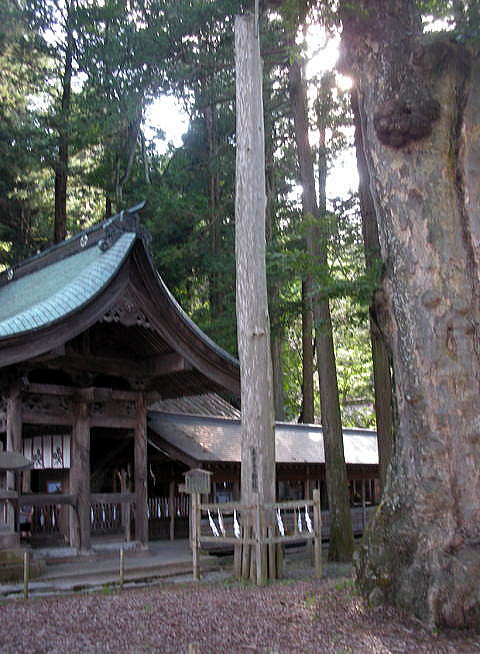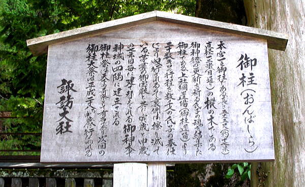 ◆御柱祭(本宮) 諏訪大社上社 茅野市、諏訪市(上諏訪地区を除く)、諏訪郡富士見町、原村 上社の担当地区は当年の2月15日に上社本宮での抽籤式に於いてくじ引きを行い担当の御柱を決定する。 伐採は茅野市玉川の諏訪大社境内地で社有の御小屋山より、当年に茅野市神之原区の伐採奉仕会が行います。 (ただし、伊勢湾台風の影響で御小屋山での御柱用材調達が困難なため、近年は別の山より伐採している。)担当地区は伐採、山出し、里曳きともに担当の御柱のみに携わります。 ここでは2010年の担当地区(抽籤結果)を記載します。 本宮一之御柱 湖南・中洲(諏訪市) 本宮二之御柱 落合・境・本郷(富士見町) 本宮三之御柱 宮川・ちの(茅野市) 本宮四之御柱 北山・米沢・湖東(茅野市) 前宮一之御柱 四賀・豊田(諏訪市) 前宮二之御柱 泉野・原(茅野市・原村) 前宮三之御柱 金沢・富士見(茅野市・富士見町) 前宮四之御柱 豊平・玉川(茅野市) なお、御柱は諏訪大社上下社、春秋宮とも以下の図のように弊拝殿などの周りに一、二、三、四之柱と、時計回りに建柱しています。 ![]() 建柱の方法 出典:青山貞一作成 ◆諏訪大社上社(本宮)の最新(2015-8-16)の建御柱 以下は今回の現地調査で撮影した諏訪大社上社本宮の最新(2015-8-16)の御柱です。 一、二の柱は拝殿の両側にありますが、三、四の柱は拝殿の後ろ側にあり、中に入ることができず写真がうまくとれていません。ご了承ください。これは他の宮でも同じです。 ![]() 撮影:青山貞一 Nikon Coolpix S8 2015-8-16 下は本宮一之御柱です。 ![]() 撮影:青山貞一 Nikon Coolpix S8 2015-8-16 下は本宮一之御柱です。 ![]() 撮影:青山貞一 Nikon Coolpix S8 2015-8-16 下は本宮一之御柱です。 ![]() 撮影:青山貞一 Nikon Coolpix S8 2015-8-16 下は本宮一之御柱です。 ![]() 撮影:青山貞一 Nikon Coolpix S8 2015-8-16 下は本宮一之御柱です。 ![]() 撮影:青山貞一 Nikon Coolpix S8 2015-8-16 下は本宮一之御柱です。 ![]() 撮影:池田こみち Nikon Coolpix S6400 2015-5-4 下は本宮一之御柱です。 ![]() 撮影:池田こみち Nikon Coolpix S6400 2015-5-4 下は本宮二之御柱です。 ![]() 撮影:青山貞一 Nikon Coolpix S8 2015-8-16 つづく |