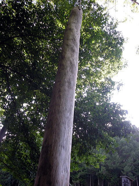 ◆上社の御柱 上社の全ての御柱にはめどてこ(漢字で表記すると目処梃子。しばしばめどとも)と呼ばれる角(つの)のような柱がV字型になるよう柱の前後についているが、これは上社の男の神を表すシンボルとされています。このめどに氏子がしがみつき、左右にゆらしながら、おんべを振る姿は圧巻とされています。 御柱は、山出しの一ヶ月前に伐採されます。 伐採が御柱の直前のため、どの柱もおよそ10トン以上の重量がある。里曳きの直前には建御柱に備え樹皮がはがされます(本来は樹皮を剥がさなかったが1986年頃、一部地区にて樹皮を剥がした御柱があり他の地区もこぞって真似し現在に至っています)。綱打ち、めどてこを揺らす練習等、事前に御柱を美しく曳行する準備が行われます。 山出し 山出しでは茅野市、原村境の綱置場から茅野市安国寺の御柱屋敷までの御柱街道と呼ばれる約12kmを本宮一之御柱、前宮一之御柱、本宮二之御柱・・・と順に前宮四之御柱と曳行します。 穴山の大曲 茅野市玉川の穴山地区に差し掛かると、玉川郵便局付近で穴山の大曲と呼ばれる鋭角な左90度曲がり角の難所があります。急カーブのため綱を引く力が柱には伝わりにくくなるので全てがうまく協調しないとうまく曲がる事が出来ません。 この辺りは道幅が狭く民家の間を通らなくてはならない為、めどてこが民家等を損傷することもあります。そのようなことが起こらない為に、御柱の方向転換等をつかさどるてこ衆と呼ばれる人々は細心の注意を払って御柱の曳行を管理します。 木落し 氏子をめどてこに乗せたまま、御柱を傾斜約30度、距離80mの木落し坂から落とします。祭りの中でもっとも危険な行事であり、過去に幾人もの死傷者を出してきました。 下社と上社とでは趣が異なり、下社木落しが勇壮盛大であるのに対して上社木落しはめどてこがいかにV字のまま落ちるかという「美しさ」が重視されているようです。 会場は観衆によって埋め尽くされます。その後、JR東日本中央本線の線路の桁下を通す為に一時的にめどてこが抜かれ、その先の国道20号線の交通を遮断して横断します。昔は中央本線の列車を止めて、線路上を横断していました。当日現場を通行する列車は線路内に人が立ち入る危険があるため徐行します。 川越し 上社山出しのラストイベントである。茅野市中河原と安国寺の境にあります、幅約40mの宮川を越えます。4月頭の水温は雪解け水のため限りなく低い、その中、御柱を曳く綱を渡し川を越えます。 2004年は雪が降る厳しい状況で行われました。川越しを終えるとすぐに御柱屋敷であり、里曳きまでの1ヶ月間安置されます。上記の木落しと川越しは場所が広く、見せ場でもあるために曳行用の片側7〜8人乗りのめどてこではなく10〜12人ほど乗れる大きなめどてこに付け替える地区も多いようです。しかしその巨大さ故に衝撃で折れるなどの事故もしばしば発生します。 里曳き 里曳きでは、御柱屋敷から御柱を曳行します。前宮は御柱屋敷から1km弱、本宮は同2.5kmの道程です。本宮一、本宮二の順で本宮の御柱を曳き出し、次いで前宮一から前宮の御柱を曳き出します。 距離が短いのでゆっくりと曳行されます。騎馬行列(お騎馬)、花笠踊りや長持ち奴などが祭りに華を添えます。 一日目は本宮一が出発したのち、上社本宮から御柱迎えのお舟が出発し、途中で本宮一と出会います。そしてそのお舟を先頭に曳行されます。上社お膝元の地元神宮寺区民による騎馬行列(お騎馬)は里曳きの警固の行列であり、奴振りの妙技が披露されます。花笠踊りや長持ち奴は、周辺地区から何十組もの参加があります。 ◆前宮 前宮の御柱は前宮前の信号から左に曲がり、前宮の鳥居をくぐって建御柱の場所までいきます。その際300mの階段を一気に上って行きます。また前宮三、前宮四の辺りになると暗くなることもあり、提灯や行燈などを持つこともあります。この道は非常に狭いため、曳き子や氏子が御柱などに挟まれる事故もしばしば発生しています。 本宮三之鳥居、階橋(きざはし) 本宮の御柱は諏訪市に入り、上社本宮まで向かう。その間に2つの鳥居があります。若宮前にある本宮三之鳥居と本宮東参道の本宮二之鳥居である。その2つの鳥居は幅が狭く高さも低いため、めどてこをぶつけないように曳行する必要があります。特に本宮二之鳥居には階段状になった階橋があり、御柱が跳ね上がらないように慎重に曳行され境内に入っていきます。 建御柱 祭りのフィナーレといえる部分です。 各宮の四方に柱を立てます。この際、御柱の頭を三角錐に切り落とす冠落しが施されます。そしてワイヤを御柱に巻きつけ、車地という道具を使って巻きあげて御柱を建てていきます。 建御柱の際には御柱に多数の男たちが乗り、にぎやかに盛り上げます。 御柱が建つと諏訪市中州の中金子区によって穴埋めの儀が行われます。(本来はこの建御柱の穴を埋めるのは中金子区しか行うことができません。しかし中金子