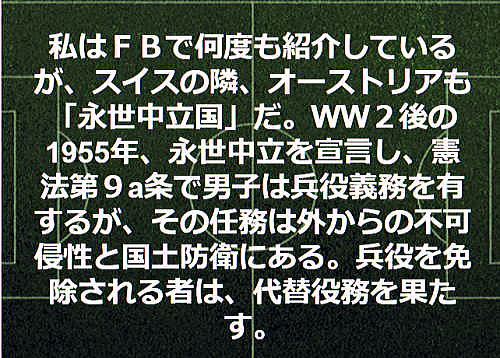 以下はオーストリア憲法の永世中立に関連する部分(第9a条)だ。オーストリア市民は兵役義務はあるこのの、その代替役務もある。,