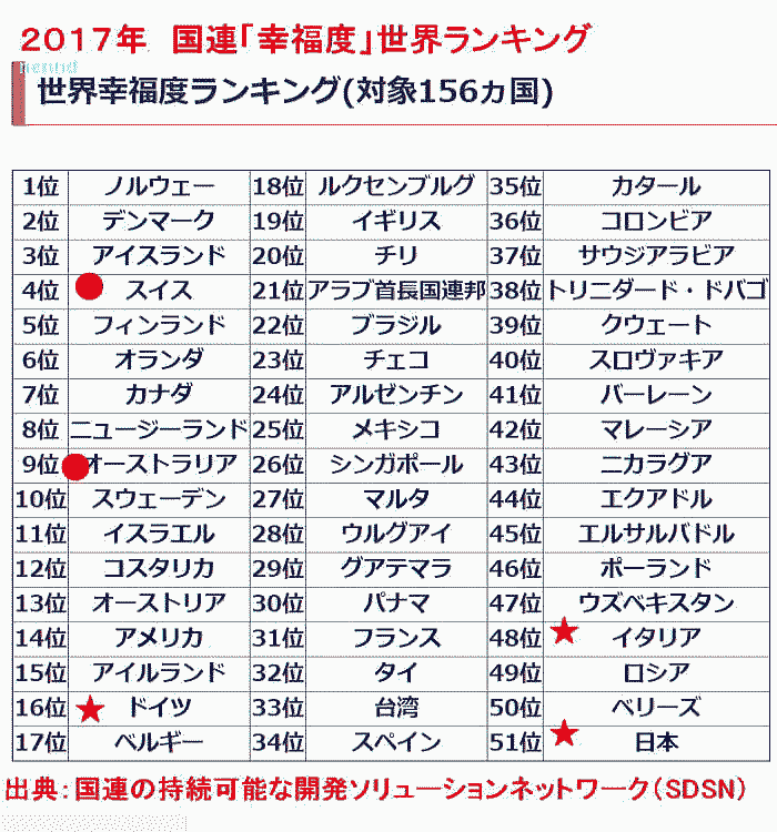 「永世中立国」のスイス、オーストリアは、主要経済(一人当たりGDP)、国連の「幸福度」で、米国一辺倒で、しかも「永世中立国」でない日本は、いずれもけた違いに低い(悪い)状態にあります。3国はいずれも工業主体の国です。