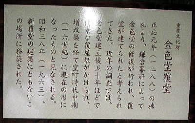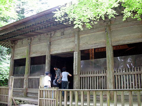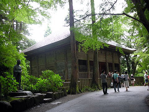 ●金色堂覆堂とのその周辺 金色堂を出ると、金色堂覆堂がある。読んで字の如く、永年、金色堂を覆っていた堂のことである。私が昔、見たときは、この金色堂覆堂のなかに金色堂があった。 ![]() 金色堂を出て右手に進むと金色堂覆堂に出る 撮影:青山貞一 Digital Camera Nikon CoolPix S8 ![]() 金色堂は建立当初は屋外に建っていたが、全面金箔貼りの建築が屋外の環境にさらされれば傷むことは容易に想像できる。 建立の数十年後には建物を風雨から守るための「霧よけ」のような施設が造られ、やがて正応元年(1288年)鎌倉将軍惟康親王の命令で金色堂を外側からすっぽり包む形で覆堂(さやどう)が建設された。 現在の金色堂覆堂は1965年に建設された鉄筋コンクリート造のものである。金色堂はこの覆堂内のガラスケースに収められ、24時間体制で温度・湿度が調整されるようになっていた。 ![]() 金色堂覆堂に入る池田さん 撮影:青山貞一 Digital Camera Nikon CoolPix S8 ![]() 金色堂覆堂 撮影:青山貞一 Digital Camera Nikon CoolPix S8 現在、木造の金色堂の旧覆堂(重要文化財)は金色堂の北西に移築されている。この旧覆堂は様式的にみて室町時代の建築である。 金色堂は覆堂内にあったとはいえ、長年の間にネズミなどの害にあったり、金箔が剥げるなど劣化が進んでいた。 そのため1962年から1968年にかけて解体修理が実施され、建立当初の豪華絢爛な姿に復元されている。解体修理後、強度の点で再使用できなかった部材は別途保管され、一部は覆堂内に展示されている。 1986年から1990年にかけて、新覆堂の改修工事が行われた。 それ以前には、ガラスケース内の湿度が上がったり、結露するなどの問題が生じていたが、ガラスケース自体も更新され、最新の設備によって相対湿度が常に65パーセントに保たれるよう配慮されている。 ![]() 金色堂隠堂の内部 撮影:青山貞一 Digital Camera Nikon CoolPix S8 ![]() 金色堂覆堂内部から外を見る 撮影:青山貞一 Digital Camera Nikon CoolPix S8 以下はWikipediaのコメントである。まさに至言である! 鉄筋コンクリート造りの覆堂及びガラスケースについては、世界遺産として見た目的にも悪く、平泉の文化遺産唯一の目玉建造物としては似つかわしくなく、今後検討が必要とされる。 ●大長寿院 ![]() 大長寿院にて 撮影:青山貞一 Digital Camera Nikon CoolPix S8 大長寿院は中尊寺一山支院のひとつ。関山西他にを坊地としている。 ![]() 中尊寺には多くの寺院があるがしの中で大長寿院は、多宝塔の次に古いものと言われている。初代の藤原清衡公が嘉承三年(1107)に建立したとされる。現在の大長寿院の周囲には竹林と大きな杉林があり、昼でも暗い。 ![]() 大長寿院にて 撮影:青山貞一 Digital Camera Nikon CoolPix S8 大長寿院にて 動画撮影:青山貞一 ![]() 横から見た大長寿院 撮影:青山貞一 Digital Camera Nikon CoolPix S8 下は大長寿院周辺の杉林。 ![]() 撮影:池田こみち Digital Camera Nikon CoolPix S10 つづく |