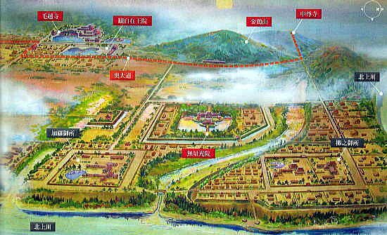 ●中尊寺から毛越寺へ 今回は三陸海岸被災地現地地札の合間での平泉文化短訪ということもあり、残念ながら腰を据えてじっくり平泉文化を堪能することはできなかった。 それでも私たちは中尊寺を一通り短訪してから、車で毛越寺に向かった。向かう道路は、下の写真にあるように、電信柱は一切無く、景観的な配慮もある。 ![]() 撮影:青山貞一 Digital Camera Nikon CoolPix S8 ●全盛期の平泉 知られているようで知られて異な事に、藤原清衡が平泉の地に構築したのは、何も中尊寺はもとより毛越寺ばかりではなかった。 広く言えば、全盛時の平泉文化は、金鶏山の麓に中尊寺と毛越寺が、さらに金鶏山の前には、京都の平等院に匹敵する無量光院が広がっていた。 まさにこの時代、藤原清衡は京都とは別に、もう一つの京都を東北の地に構築したのである。 下の図は、最盛期の奥州藤原氏、平泉文化を示している。毛越寺は下の図中、左上に位置している。 ![]() 最盛期の奥州藤原氏、平泉文化 出典:トランヴェールの2011年9月号 下の写真は平等院である。奥州藤原氏は、東北の地で京都に比肩する建築、文化を構築していたのである。 ![]() 出典(下の解説も):Wikipedia 平等院 京都府宇治市にある藤原氏ゆかりの寺院。平安時代後期・11世紀の建築、仏像、絵画、庭園などを今日に伝え、「古都京都の文化財」として世界遺産に登録されている。山号を朝日山と称する。宗派は17世紀以来天台宗と浄土宗を兼ね、現在は特定の宗派に属さない単立の仏教寺院となっている。本尊は阿弥陀如来、開基は藤原頼通、開山は明尊である。 また鳳凰堂が10円硬貨の表の絵柄として有名である。 ●平泉文化と毛越寺 往事、中尊寺と毛越寺は、奥大道でつながっていた。つながっていたのは、中尊寺と毛越寺だけでない。奥大道は、北は青森の外が浜、南は福島南端の白河関まで通じ、物資、文物から文化を伝える貴重な通り道となっていたのである。 その影響範囲は、遠く北海道から樺太まであったとする学説もある。 ※ たとえば、「海外に繋がる奥大道」、トランヴェールの2011年9月号 藤原清衡は長治2年(1105年)、奥州藤原氏の一代拠点である平泉に最初院(後の中尊寺)を建立したあと、永久5年(1117年)に基衡は毛越寺を再興した。 その後基衡は毛越寺などの造営を続け、壮大な伽藍と庭園の規模は京のそれを凌いださえ言われている。 奥州藤原氏は清衡、基衡、秀衡、泰衡と四代、百年に渡り繁栄を極めた。東北の平泉は平安京に次ぐ日本第二の大都市となった。戦乱の続く京を尻目に平泉は発展を続けた。往事は17万人がこの地に住んだと言われている。 毛越寺は岩手県西磐井郡平泉町にある天台宗の寺院であり、開山は慈覚大師円仁、現在、本尊は薬師如来、脇侍は日光菩薩・月光菩薩が安置されている。 「毛越寺境内 附 鎮守社跡」として史跡に指定されたのは、1922年(大正11年)10月12日。現在では、国の特別史跡、特別名勝に指定されている。 2001年に世界遺産登録の前提となる暫定リストに「平泉-浄土思想を基調とする文化的景観」の一部として記載された。2005年7月には史跡の追加指定がなされた。 2008年の第32回世界遺産委員会の審議では、登録延期が決定した。登録は結局見送られたものの、文化庁・岩手県では、ユネスコへの再度の申請を目指し、2011年5月に国際記念物遺跡会議が、世界遺産への登録を勧告し、同年6月25日に世界遺産に登録された。 ![]() 撮影:青山貞一 Digital Camera Nikon CoolPix S8 下は毛越寺のエントランス。拝観料は大人ひとり500円である。 ![]() 撮影:青山貞一 Digital Camera Nikon CoolPix S8 ●毛越寺の庭園 毛越寺は「吾妻鏡」によると慈覚大師円仁が開山し、主に藤原氏二代基衡、三代秀衡が再興し伽藍の造営にあたったとされている。 毛越寺における伽藍など建物数は、四十余宇、禅坊五百余宇のある。それは中尊寺の四十余宇、禅坊三百余宇よりも大きかったことが推定される。 毛越寺の主な建築物は金堂、開山堂、嘉祥寺、講堂、金堂円隆寺、鐘楼、経楼、常行堂、常行堂、法華堂である。 ![]() 毛越寺の伽藍復元図 撮影:青山貞一 Digital Camera Nikon CoolPix S8 非常に残念なことだが、毛越寺では嘉禄2年(1226)、天正元年(1573)、慶長2年(1597)に起きた三度の火災で伽藍は焼失、藤原三代の滅亡とともに毛越寺のたくさんの伽藍も消えていった。 しかし、平安時代を代表する浄土式庭園、往事の平泉文化を表す毛越寺の庭園は、今なお平泉の地に残されている。東西に長い大泉池、南東に出島、また金堂、開山堂、嘉祥寺、講堂、金堂円隆寺、鐘楼、経楼、常行堂、常行堂、法華堂は、それぞれの礎石が残されており、見ることが出来る。 なお、出島近くには飛島があり立石がある。また遣水と呼ばれる池に水を取り込む水路がある。これは平安時代の遺構として唯一のものである。遣水には玉石を底に敷き詰めている。そこでは曲線の流れを作ったり、水切り石、水越など作庭記で見られる技法が多数使われている。 ![]() 遣水 撮