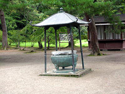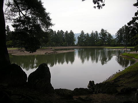 ●しばし毛越寺の庭園を歩く このあと、私たちは時間が許す限り、往事の平泉文化を思い描きながら毛越寺の庭園を歩くことにした。 下の図は、全盛期の毛越寺の伽藍配置イメージ図である。 ![]() 毛越寺の伽藍復元図 撮影:青山貞一 Digital Camera Nikon CoolPix S8 ![]() 出典:荒木伸介、角田文衛、埴原和郎、大矢邦宣著 奥州平泉黄金の世紀 新潮社、1987年 最初は南大門跡である。 上の図では、南端左(下)に南大門跡がある。 ![]() 撮影:青山貞一 Digital Camera Nikon CoolPix S8 「南大門跡」 南大門は「二階惣門」ともいい、両脇に仁王像を安置し、正面に金堂円隆寺の勅額を掲げていた。天正元年(1573年)合戦による兵火のために焼失したが、礎石十二個が現存している。 ![]() ![]() 撮影:青山貞一 Digital Camera Nikon CoolPix S8 南大門の次は 築山(つきやま) である。 築山は、池の南西(左下)の位置にあり、水面より約4mの高さに築かれている。水際から山頂近くまで大小各種の石を立て水辺に迫る岩山の姿が造り出されている。作庭記に書かれている「枯山水の様」の実例と言われている。 ![]() ![]() 毛越寺庭園の築山 撮影:青山貞一 Digital Camera Nikon CoolPix S8 ![]() 毛越寺庭園の築山 撮影:青山貞一 Digital Camera Nikon CoolPix S8 ![]() 毛越寺庭園の築山の西外れ 撮影:青山貞一 Digital Camera Nikon CoolPix S8 築山の西(左)にたくさんのアヤメが植えられている。何でもこのアヤメは明治神宮から分譲献進されたものとのこと。 ![]() 撮影:青山貞一 Digital Camera Nikon CoolPix S8 ![]() 撮影:青山貞一 Digital Camera Nikon CoolPix S8 次は「開山堂」である。 毛越寺を開かれた慈覚大師円仁(794〜864)をお祈りする堂である。慈覚大師は、天台宗第三藩主となり生前の業績を称えられ、日本初の大使号を授けられた。在唐九年間の紀行「入唐求法巡礼紀行」はマルコポーロの「東方見聞録」、玄奘三蔵の「西域記」とともに、三大旅行記として高く評価されている。 ![]() ![]() 撮影:青山貞一 Digital Camera Nikon CoolPix S8 ![]() 撮影:青山貞一 Digital Camera Nikon CoolPix S8 ![]() 開山堂 撮影:青山貞一 Digital Camera Nikon CoolPix S8 次は「嘉祥寺跡」 嘉祥寺跡は庭園の一番西(左上)に位置している。 吾妻鏡によると二代元衛公が工を始め三代秀衡公が完成させた御堂で、その全身は慈覚大師開山までさかのぼり、寺名は開山時の年号を由来する。本尊は丈六の薬師如来。建物の規模は正面7間27.9m、側面6間約22.5mで左右に廊があり、金堂円隆寺とほぼおなじである。堂内の壁や扉には法華経の教えが描かれていた。 ![]() ![]() 嘉祥寺跡 撮影:青山貞一 Digital Camera Nikon CoolPix S8 ![]() 嘉祥寺跡 撮影:青山貞一 Digital Camera Nikon CoolPix S8 つづく |