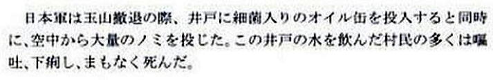 総合目次へ 731部隊関連写真1 731部隊 黒竜江省哈爾賓の現場 731部隊関連写真2 731部隊陳列館−1、731部隊陳列館−2 731部隊関連写真3 731部隊関連の中国側資料 ◆中国侵略日本軍第731部隊罪証陳列館完烈資料 ![]() 中国侵略日本軍第731部隊罪証陳列館 出典:軍民軍事 ![]() 中国侵略日本軍第731部隊罪証陳列館 出典:軍民軍事 以下は731部隊が飛行機でペスト菌を空から散布した対象地域の一つ寧波市のまちの地図。ザ・スクープの特集では、この町の住民が当時の状況をテレビカメラに向って説明していた。 ![]() 中国侵略日本軍第731部隊罪証陳列館 出典:軍民軍事 ![]() 中国侵略日本軍第731部隊罪証陳列館 出典:軍民軍事 ![]() これは現在の寧波市 出典:中国侵略日本軍第731部隊罪証陳列館 軍民軍事 ![]() 出典:中国侵略日本軍第731部隊罪証陳列館 軍民軍事 ![]() 中国侵略日本軍第731部隊罪証陳列館 出典:軍民軍事 ![]() 出典:軍民軍事 ![]() 中国侵略日本軍第731部隊罪証陳列館 出典:軍民軍事 ![]() ![]() ![]() 中国侵略日本軍第731部隊罪証陳列館 出典:軍民軍事 ![]() ![]() 中国侵略日本軍第731部隊罪証陳列館 出典:軍民軍事 ![]() 出典:中国侵略日本軍第731部隊罪証陳列館 軍民軍事 以下は731部隊の撤退時爆破された細菌実験センター(四方楼)の残骸 ![]() 出典:中国侵略日本軍第731部隊罪証陳列館 軍民軍事 下は731部隊の黒竜江省哈爾浜から日本各地への逃亡ルート略図。 ![]() 中国侵略日本軍第731部隊罪証陳列館 出典:軍民軍事 以下は実験動物(ネズミなど)の飼育施設。 ハタリス(ネズミの一種)飼育設備(内部)中国侵略日本軍第731部隊罪証陳列館 出典:軍民軍事 ![]() ハタリス(ネズミの一種)飼育室(外観) 出典:軍民軍事 出典:中国侵略日本軍第731部隊罪証陳列館 軍民軍事 ![]() 出典:中国侵略日本軍第731部隊罪証陳列館 軍民軍事 ![]() 小動物飼育室(外観) 出典:中国侵略日本軍第731部隊罪証陳列館 軍民軍事 ![]() 出典:中国侵略日本軍第731部隊罪証陳列館 軍民軍事 ![]() 昆虫班旧跡 出典:中国侵略日本軍第731部隊罪証陳列館 軍民軍事 下は城子溝野外実験場。 ![]() 出典:中国侵略日本軍第731部隊罪証陳列館 軍民軍事 ![]() 出典:中国侵略日本軍第731部隊罪証陳列館 軍民軍事 下は731部隊の安達野外実験訓練の後継。 ![]() 出典:中国侵略日本軍第731部隊罪証陳列館 軍民軍事 以下はマルタを使った被爆実験。 ![]() 出典:中国侵略日本軍第731部隊罪証陳列館 軍民軍事 以下はマルタを使った凍傷実験。 ![]() 實驗對象被凍24小時的手(資料照片)。 圖片來源?人民網 出典:中国侵略日本軍第731部隊罪証陳列館 ![]() 侵華日軍第七三一部隊舊址凍傷實驗室遺址。新華社記者 王凱攝 出典:中国侵略日本軍第731部隊罪証陳列館 出典:新華社 ![]() 10毫升紫色注射器。 出典:中国侵略日本軍第731部隊罪証陳列館 出典:中国軍網 ![]() 標本瓶。 出典:中国侵略日本軍第731部隊罪証陳列館 出典:中国軍網 ![]() China reveals new evidence of Japan's germ war atrocities Source:CGTN ![]() China reveals new evidence of Japan's germ war atrocities Source:CGTN Fin 総合目次へ |