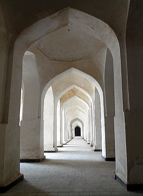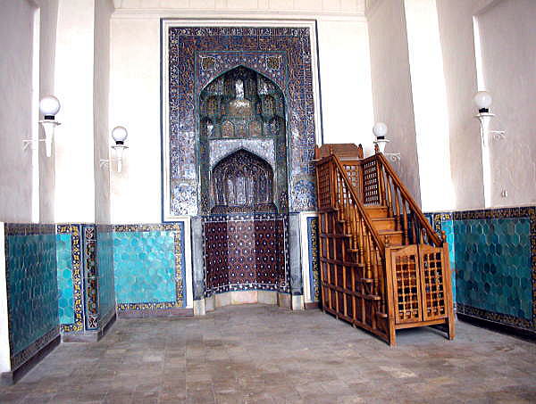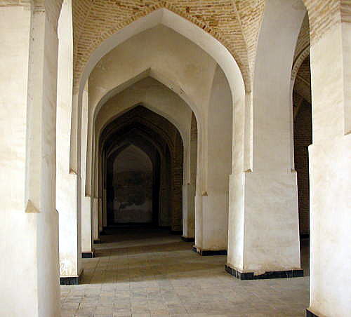 このカラーン・モスクの広場には礼拝のとき1万人規模のブラハ市民が集まるといいます。 ![]() カラーンモスク 撮影:青山貞一 Nikon Coolpix S8 2015-2-25 ![]() カラーンモスクにて 撮影:Nikon Coolpix S8 2015-2-25 下はカラーン・モスクの回廊を写したものです。 ![]() カラーンモスクの回廊 撮影:青山貞一 Nikon Coolpix S8 2015-2-25 ![]() カラーンモスクの回廊 撮影:池田こみち Nikon Coolpix S6400 2015-2-25 ![]() カラーンモスクの回廊 撮影:池田こみち Nikon Coolpix S6400 2015-2-25 ![]() カラーンモスク 撮影:青山貞一 Nikon Coolpix S8 2015-2-25 モスクの中にはカソリックのキリスト教のように崇拝の対象物はまったくなく、あくまで礼拝を行うための場となっています。 下は礼拝時に使われる設備です。具体的には解説をお読みください。写真の中にあります「くぼみ」と「階段」について説明しています。 ![]() カラーンモスク 撮影:青山貞一 Nikon Coolpix S8 2015-2-25