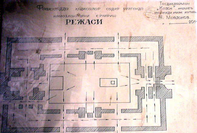 ![]() カラーンモスク 撮影:青山貞一 Nikon Coolpix S8 2015-2-25 以下の写真はカラーン・モスクの平面図を示したものですが、→があるので、非常時の退出を示しているのかも知れません。。 ![]() 撮影:青山貞一 Nikon Coolpix S8 2015-2-25 ところで、このカラーンモスクを視察していたところ、ウズベキスタンの若い三人組が入ってきました。聞けば、そのうちの2人はイギリスのロンドンで行われたパラリンピックに出場したアスリートの若者とのことです。 一人はジャンプ、もう一人は陸上の短距離などの選手、そのうちの一人は、盲目の選手、2020年の東京オリンピックにもぜひ参加したいとのことでした。 下の写真は彼らとは一緒に撮影した写真です。 ![]() ブハラのカラーンモスクマで撮影したイギリスのロンドンのパラリンピックで活躍し若者 撮影:青山貞一 Nikon Coolpix S8 2015-2-25 ![]() ブハラのマドレセで撮影したイギリスのロンドンのパラリンピックで活躍した選手と一緒に 撮影:池田こみち:Nikon Coolpix 6400 実はウズベキスタンの3人の若者には、翌々日、ブハラからサマルカンドに行く特急列車のなかで再会することになります! つづく |