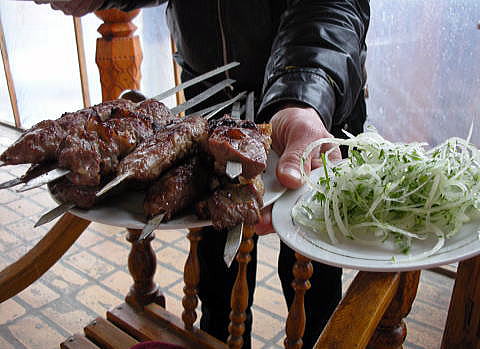 初日の昼に私立学芸員が試しに食べて見たらと串刺しの牛肉を野菜の付け合わせで食べて見ました。 この串刺し肉は、通常、羊の肉をタンドールという円筒形の粘土製の壷窯型オーブンで焼いたものですが、羊は食べれないというと、これも牛肉を焼いてくれるように頼みました。これまた美味です! 写真はその串焼きです。一人2串ありますが、これとナンだけでお腹がいっぱいになります。それにしても2人前でこんなに沢山の串焼き肉がでてくるのにはおどろきです。 ![]() 牛肉の串焼き 撮影:青山貞一 Nikon Coolpix S8 2015-2-25