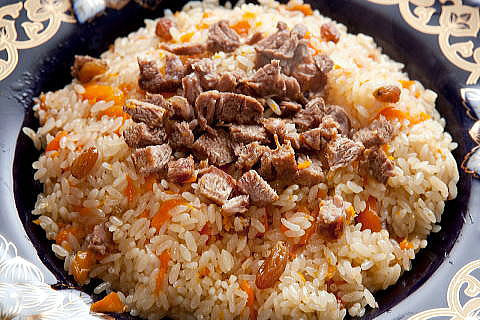 次はピラフです。初日の昼に頂きました。羊の肉は食べられないので、牛肉版としてもらいました。残念ながら写真を撮り忘れました。 下の写真はWikipediaからのものですが、食べたピラフと同じようなものです。 これも信じられないほど美味しかったのです。日本の普通のピラフなんて足元にも及ばないほどでした。 ![]() ウズベキスタンのピラフ 出典:Wikipedia