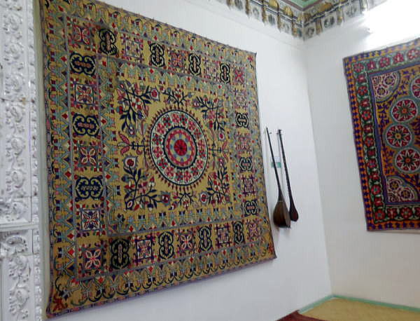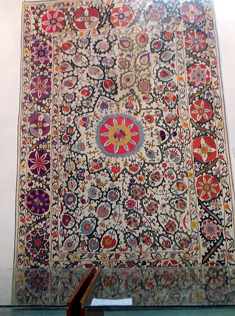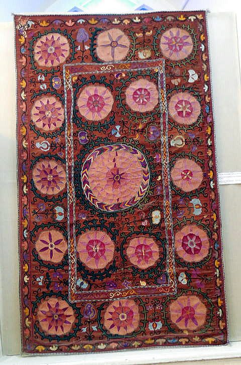 | 総合メニュー(中央アジア) スィトライ マヒ ホサ宮殿1 宮殿2 宮殿3 宮殿4 宮殿5 宮殿6 宮殿7 博物館がある道をさらに少し先に行くと、左手にスザニ博物館があります。 ◆スザニ(スザンニ、Suzani) スザニはスザンニ(Suzani)ともよばれます。下はそのスザニについての概要です。