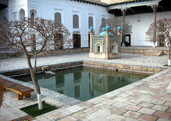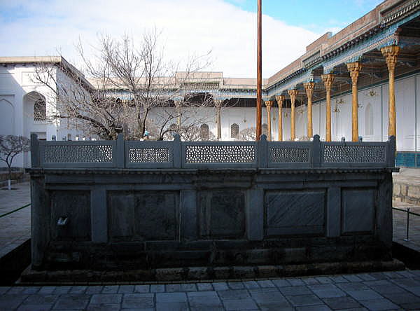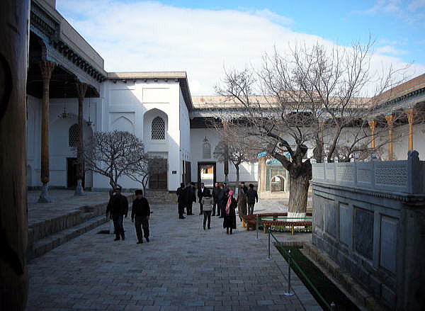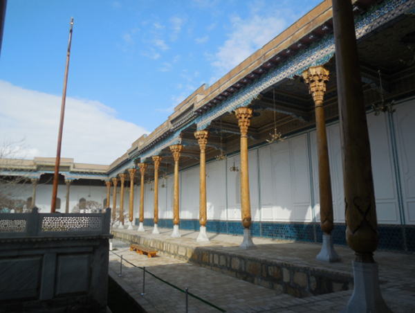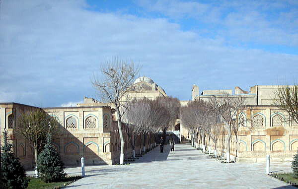 | 総合メニュー(中央アジア) バハウッディン‐ナクシュバンド廟1 バハウッディン‐ナクシュバンド廟2 バハウッディン‐ナクシュバンド廟3 バハウッディン‐ナクシュバンド廟4 ◆写真で見るバハウッディン‐ナクシュバンド廟 1 バハウッディン‐ナクシュバンド廟は1544年に建てられたモスクです。 廟内には、モスク、ハナカ、ハウズ、ミナレットなどがあり、ウズベキスタンだけでなく、広く中央アジア諸国からの巡礼者が絶えません。 中央アジアで最も影響力を持つイスラーム神秘主義ナクシバンディ教団の開祖、14世紀の聖人バハウッディン・ナクシバンドを祀った霊廟です。 バハウッディン‐ナクシュバンド廟は中央アジアの人々にとってメッカに次ぐ聖地とされています。 下は長いアプローチの先から入口を撮影したものです。 ![]() 撮影:青山貞一 Nikon Coolpix S8 2015-2-26 下は入口から見たアプローチとモスク、ミナレットなどです。 ![]() 撮影:青山貞一 Nikon Coolpix S8 2015-2-26 この後、中庭を囲むようにモスクがあります。このモスクは大きく、柱が10本以上もあります。 ![]() 撮影:池田こみち Nikon Coolpix S6400 2015-2-26 柱の基部は伝統的な建築手法、ラクダの皮を挟む方法が取られていました。 ![]() 撮影:池田こみち Nikon Coolpix S6400 2015-2-26 下は10以上の柱で支えられたモスクの天井です。 ![]() 撮影:池田こみち Nikon Coolpix S6400 2015-2-26 下はモスクの天井です。すばらしい幾何学模様です。 ![]() 撮影:池田こみち Nikon Coolpix S6400 2015-2-26 ハウズがあるモスクに囲まれた中庭の一角に、聖人バハウッディン・ナクシバンドの石棺があります。下の写真はその石棺です。 ![]() 撮影:青山貞一 Nikon Coolpix S8 2015-2-26 下の写真の右下が聖人バハウッディン・ナクシバンドの石棺です。 ![]() 撮影:青山貞一 Nikon Coolpix S8 2015-2-26 下はアプローチの先にあるハウズ(池)がある中庭です。小さなチョル・ミナルがあります。 ![]() 撮影:青山貞一 Nikon Coolpix S8 2015-2-26 下の写真は、その小さなチョル・ミナルです。 ![]() 撮影:青山貞一 Nikon Coolpix S8 2015-2-26 つづく |