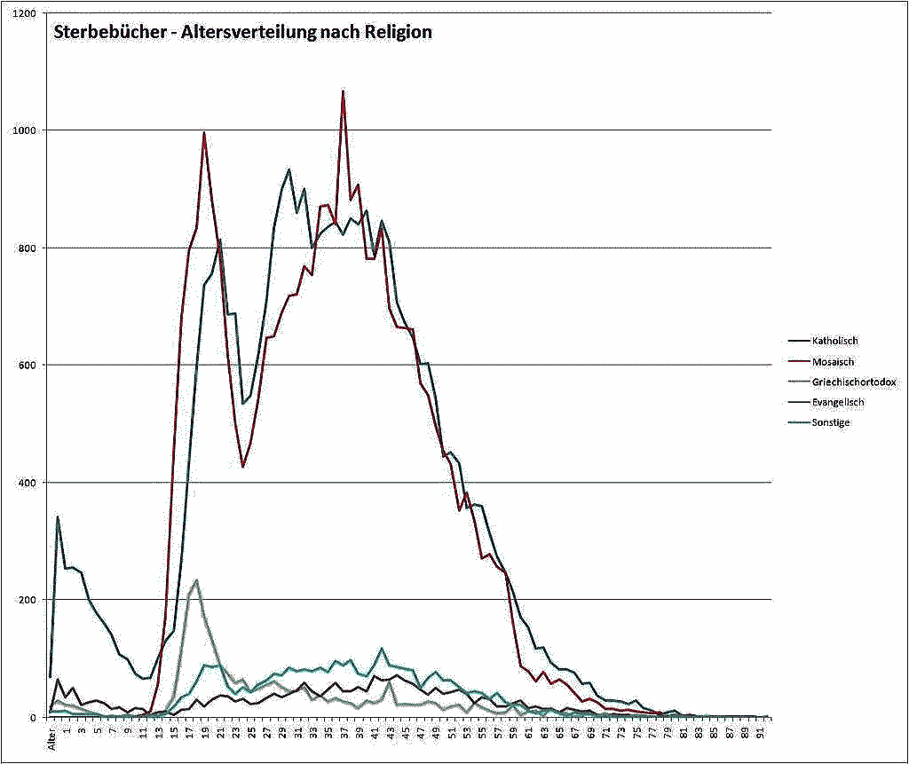 年齢別死亡記録データ(死亡者の宗教別年齢分布)
