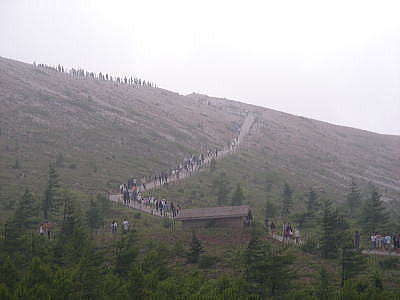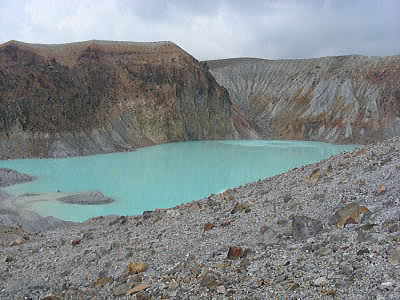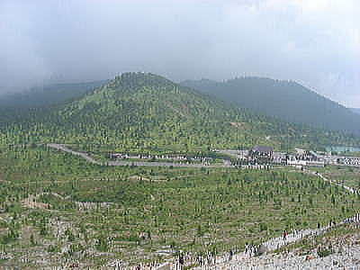 さらに詳しい地形は、群馬大学インターネット火山博物館の航空写真がある。この写真では、中景として浅間山山系、遠景として八ヶ岳山系が見える! 白根山は標高2160m、上信越高原国立公園に位置している。 ![]() 撮影:青山貞一、Nikon Cool Pix S10 白根山は、群馬県吾妻郡草津町に位置する活火山である。この白根山は、他の白根山系(逢ノ峰、本白根山)と区別するため草津白根山と呼ばれることが多い。下の写真にあるように、山頂付近が白あるいはうす茶色の山肌が広がっているのが大きな特徴であるが、1882年の噴火以前は火口付近まで緑があったという。 ![]() 白根山の山肌。ほとんど植生がなく、白やうす茶色となっている ![]() 右の山は白根山系の一つの逢ノ峰 撮影:青山貞一、Nikon Cool Pix S10 当日は天候変化が著しく、あっという間に下の写真のように円形が見えなくなってしまった。 ![]() 撮影:青山貞一、Nikon Cool Pix S10 上の写真にある逢ノ峰の頂上には、下の案内板にあるように、湯釜に類する池があるが、今回は時間の関係もあり逢ノ峰登山は行わなかった。 ![]() 撮影:青山貞一、Nikon Cool Pix S10 なお、今回頂上まで登った白根山では、現在でも山頂には硫化水素(H2S)ガスが発生しているために立入規制が行われているが、山頂付近の湯釜と呼ばれる火口湖は観光地としても有名である。現地にある東京工業大学火山流体研究センターは、主としてこの白根山の「マグマ中の揮発性成分の挙動」、「火山体内部の熱水系」、「火山ガス放出量の連続測定法」などを研究の対象としている。 この白根山の山頂近くまでは、車で上れるが、いわゆる山頂の湯釜までは、下の写真にあるように、登山道が整備されており、誰でも容易に登ることができる。当日は犬を連れた観光客もたくさん登っていた。 ※記録に残る白根山の噴火(出典:気象庁) 上記を見ると、浅間山が大爆発した天明3年(1783年)に、白根山でも大噴火があり、草津温泉の温度が急上昇、浴客が死亡したとある。江戸時代における両火山の噴火には何らかの因果関係があるのだろうか? ![]() 撮影:青山貞一、Nikon Cool Pix S10 ![]() 撮影:青山貞一、Nikon Cool Pix S10 白根山に登り切ると、下の写真にある湯釜がある。この湯釜はいつもエメラルドグリーンとなっている。 ![]() 白根山の頂上にある湯釜 撮影:青山貞一、Nikon Cool Pix S10 湯釜はWikipediaによれば、直径約300m、水深約30m、水温約18℃の火口湖であり、pHは1.0前後と世界でもっとも酸性度が高い湖、と言われている。これは火山ガスに含まれる塩化水素や二酸化硫黄が水に溶け込み、塩酸や硫酸となったためと考えられている。水がエメラルドグリーンなのは、水に溶け込んでいる鉄イオンや硫黄などの微粒子の影響で、日光の特定の波長の光が吸収されるためだと考えられている。したがって、湯釜の水をビーカーなどに汲んでみても、エメラルドグリーンには見えない。 ![]() 撮影:Nikon Cool Pix S10 下は白根山の頂上から撮影した逢ノ峰である。麓にある施設は、休憩所。 ![]() 撮影:青山貞一、Nikon Cool Pix S10 つづく |