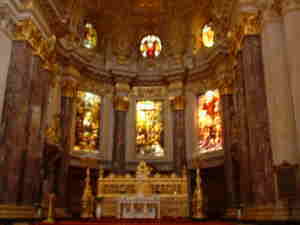 ベルリン大聖堂はルネッサンス様式の荘厳な教会である。なかでもステンドグラスと天井画は圧巻である。