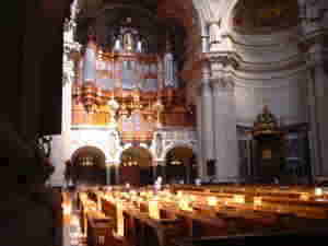 ベルリン大聖堂には高さ114mの大天蓋がある。この大天蓋は、第二次世界大戦で大きな被害を受けた。しかし1993年に修復されれている。