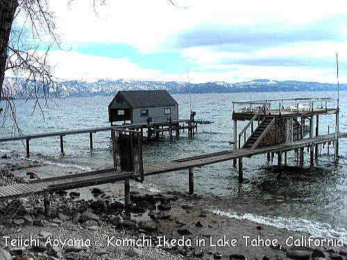 下の写真はキングビーチ近くの北タホ湖地域の沿岸で撮影したもの。タホ湖にはおそらくプライベート・ピアとおぼしき桟橋がいくつもある。左の家のなかにクルーザーが入っていた。対岸はネバダ州である。